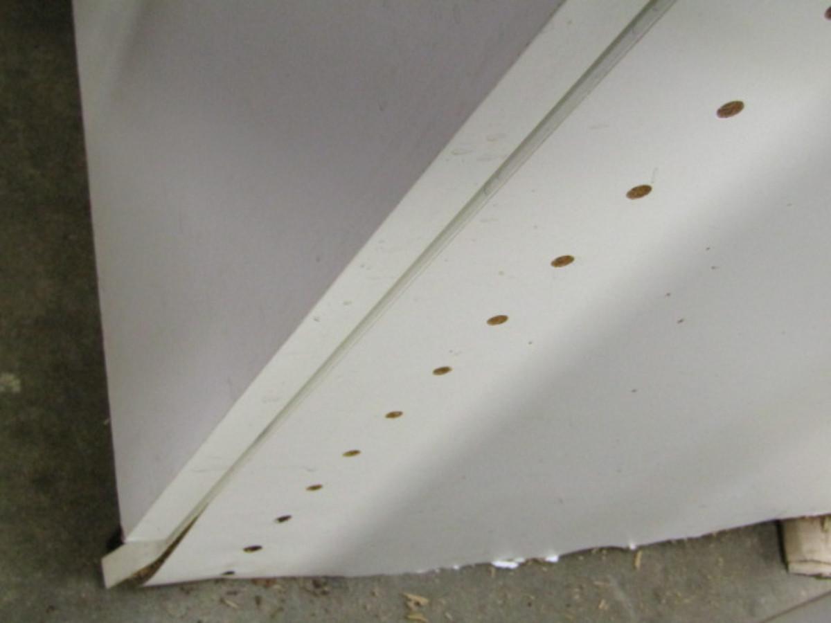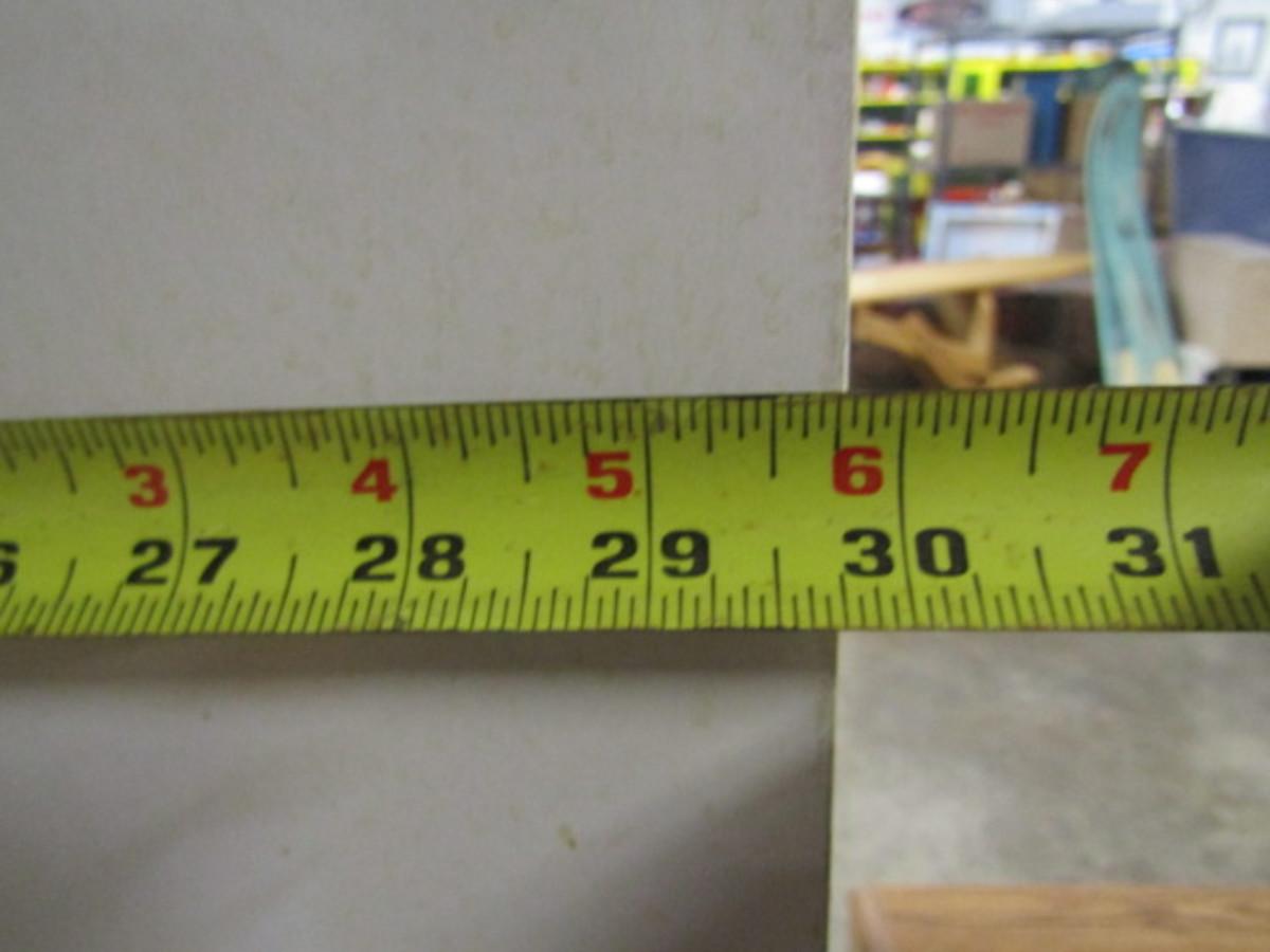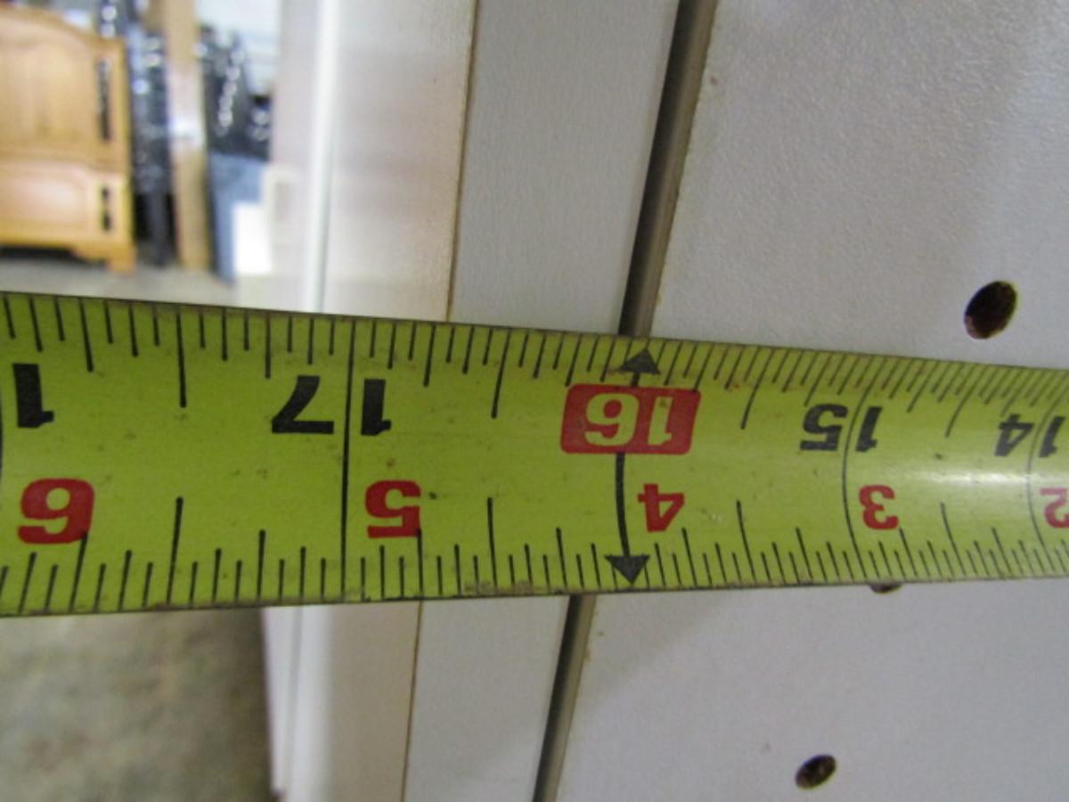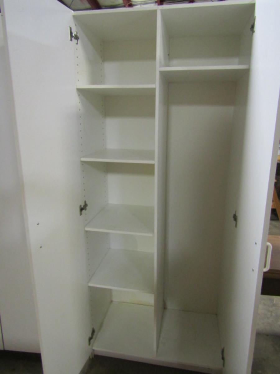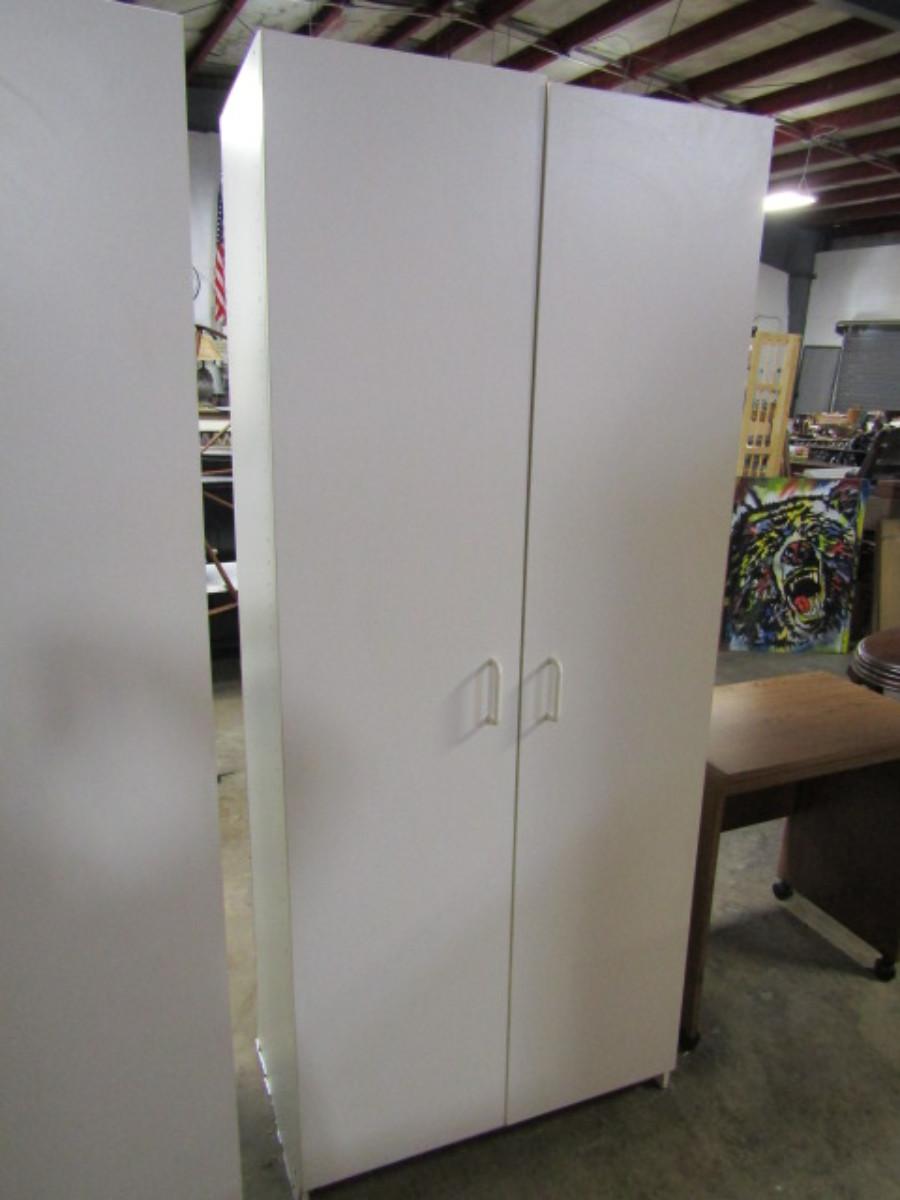 Vinyl Covered Pressed Wood Storage Cabinet. Some damage to bottom- please see pictures.