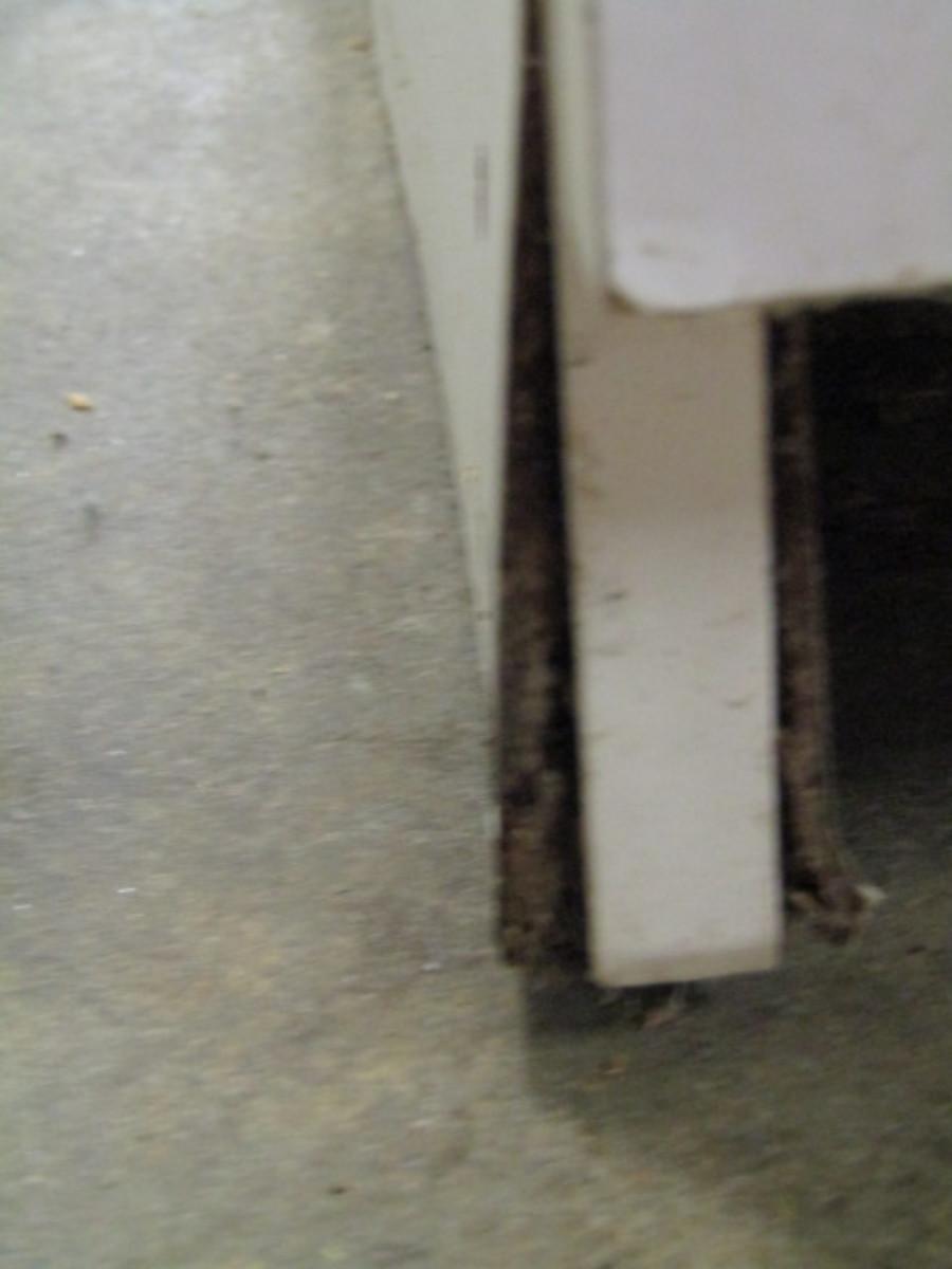 Vinyl Covered Pressed Wood Storage Cabinet. Some damage to bottom- please see pictures.