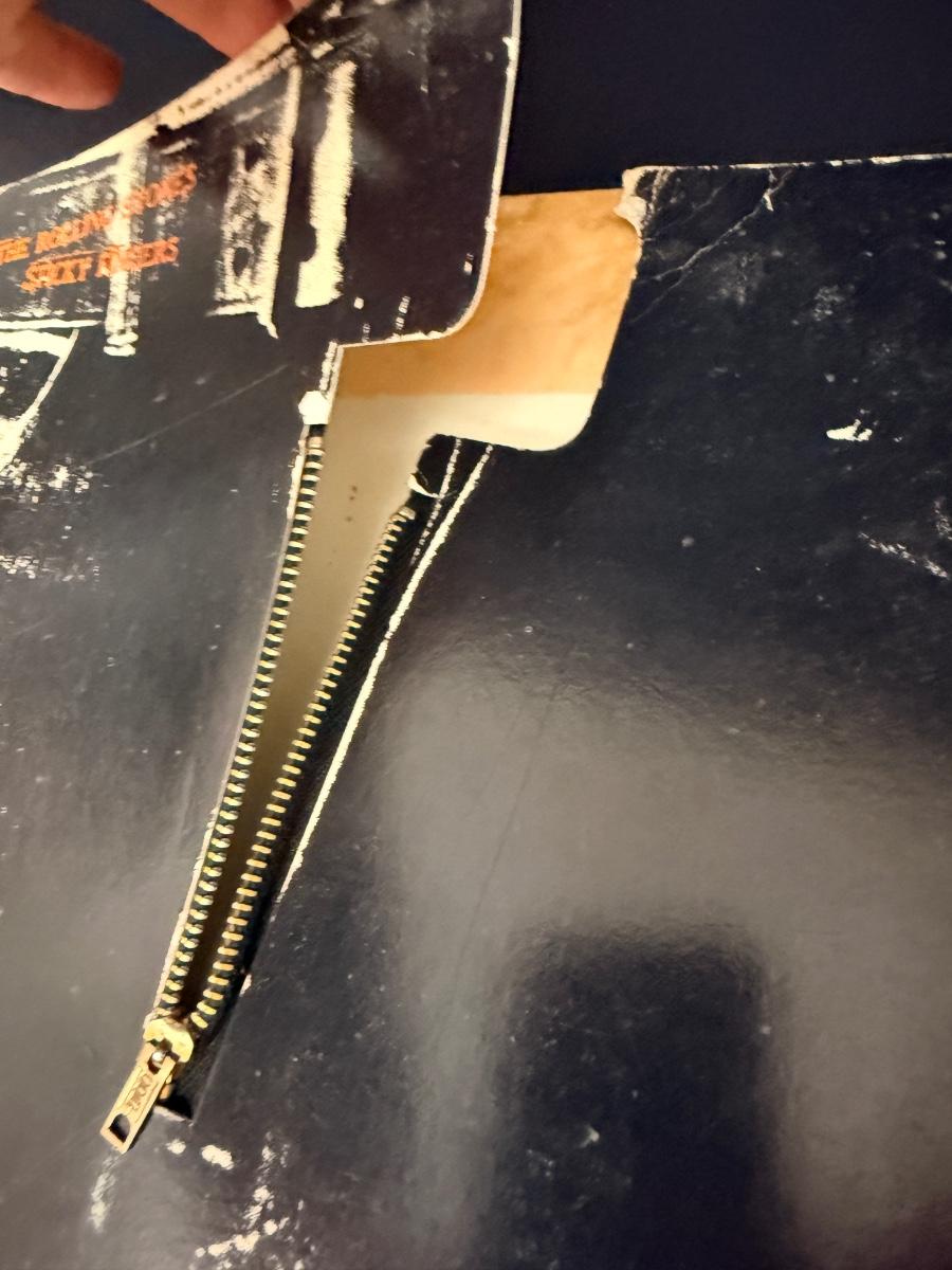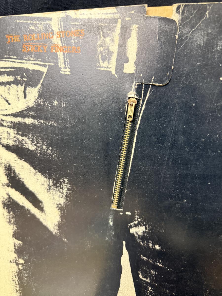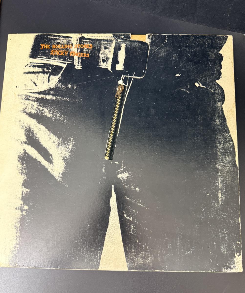 The Rolling Stones - Andy Warhol Cover Art with functional zipper c 1971 - vinyl fair, no sleeve, album cover is rough as shown.