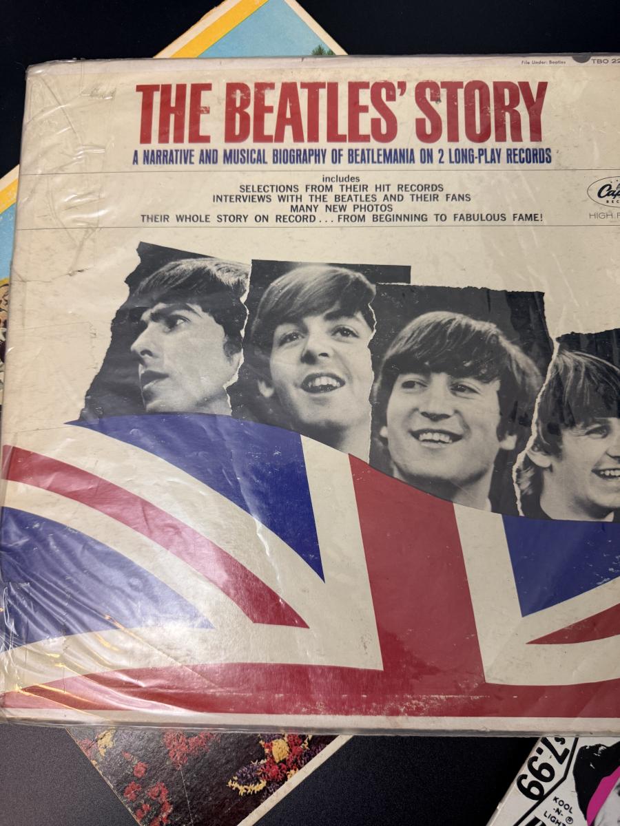 The Beatles Story - 2 Vinyl Records - c1964 - 6th Album. Both records in good condition with original sleeves. Cover has original plastic protective cover - nice overall
