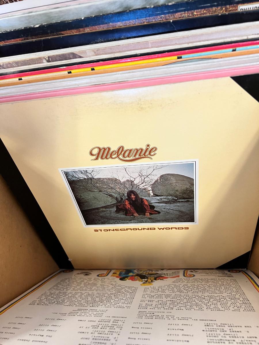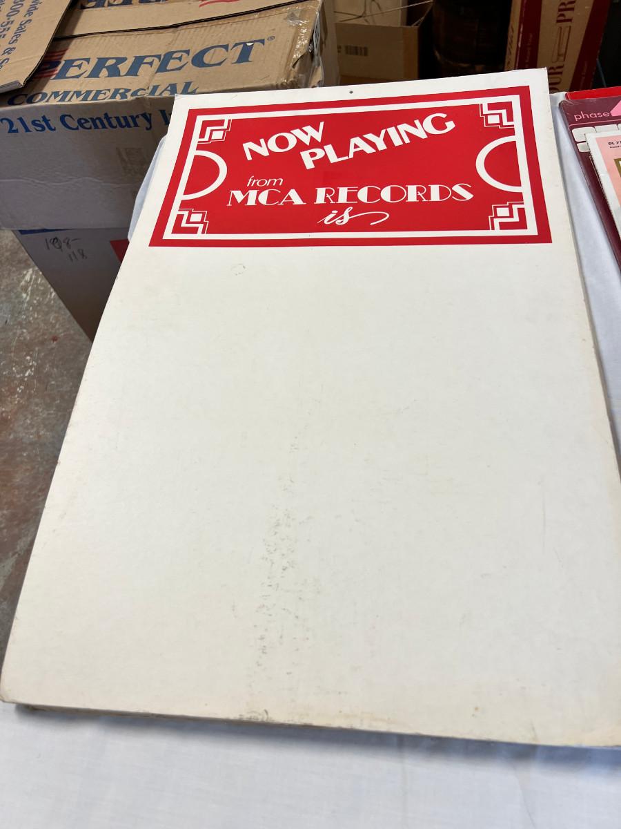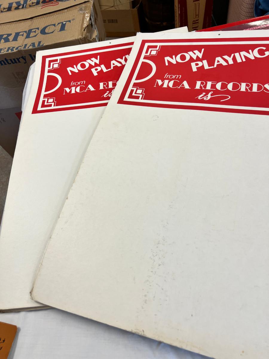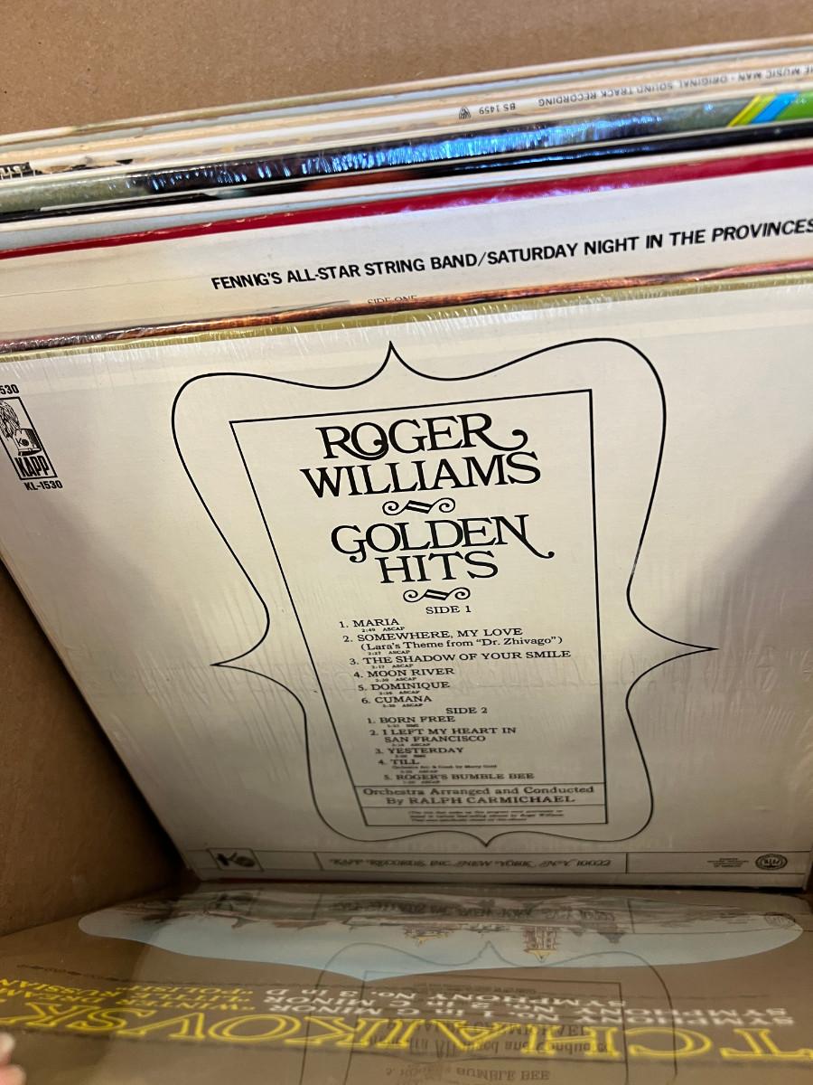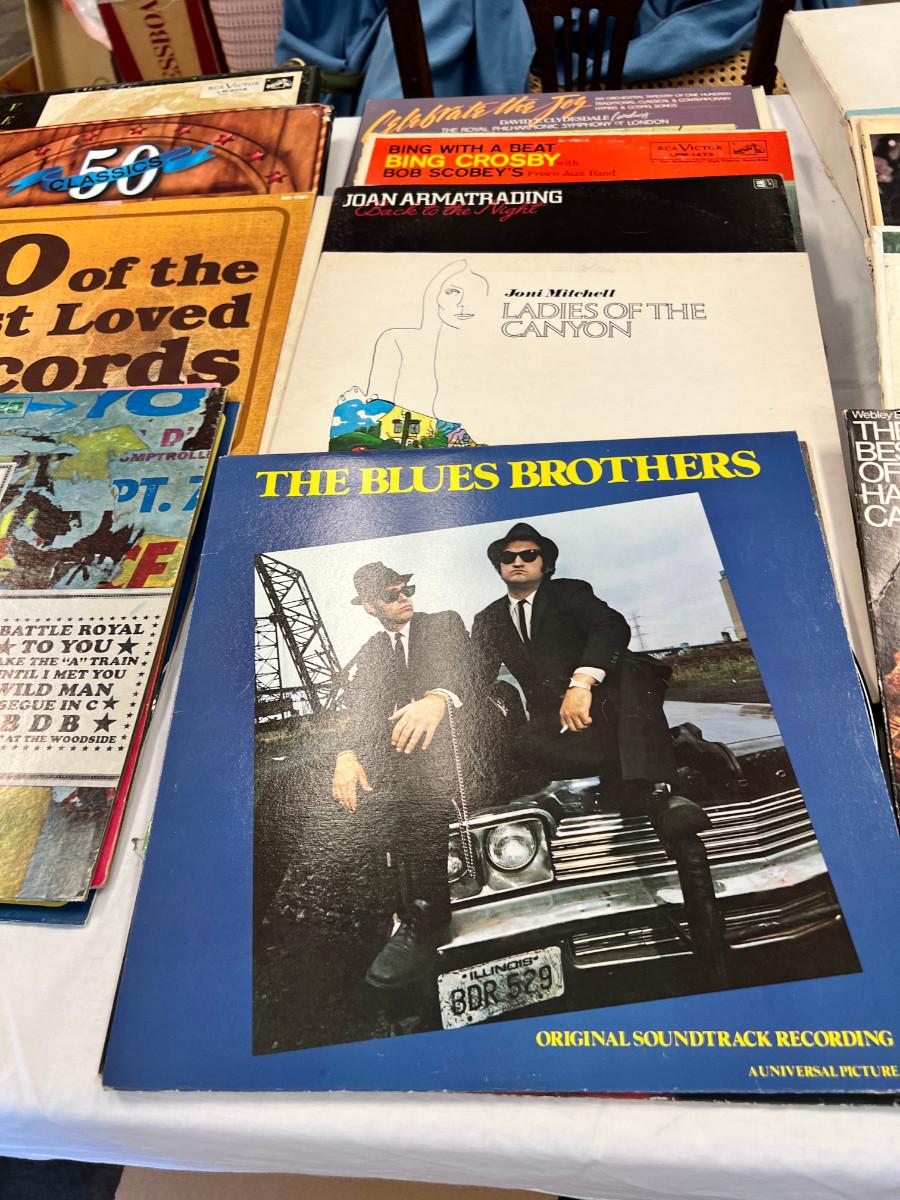 A large amount of vintage vinyl, all used. Christmas, country and rock, with some show tunes and musicals thrown in. Some unusual albums and a stack of "now playing" display poster NOS cards. No shipping