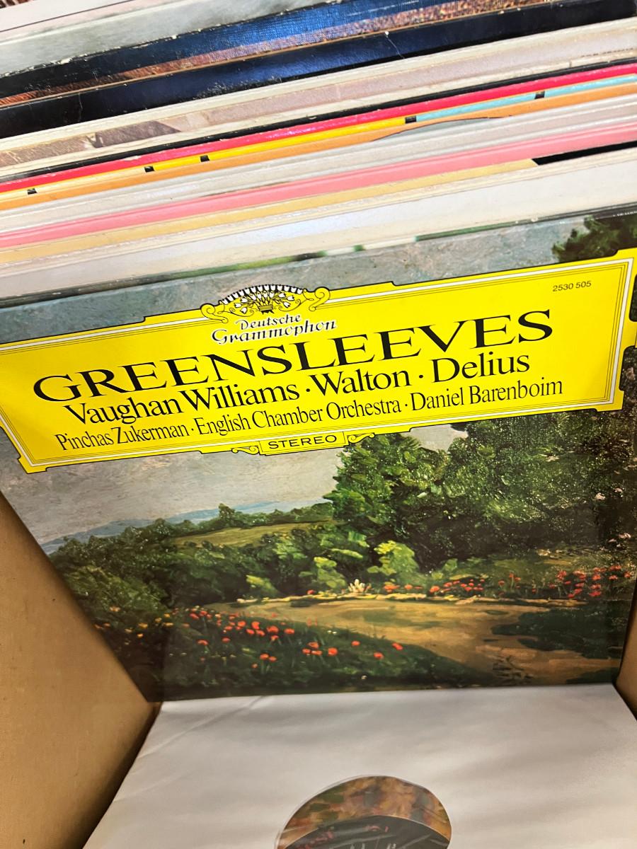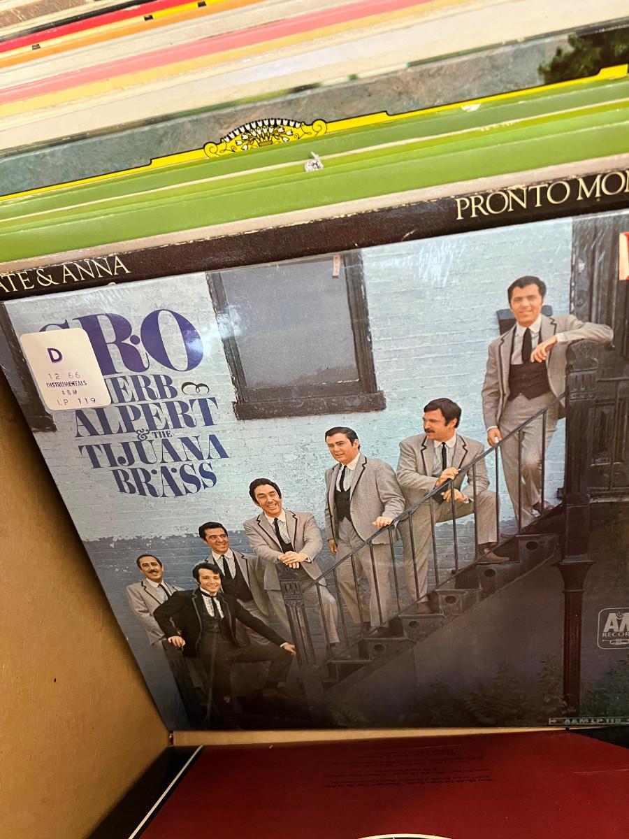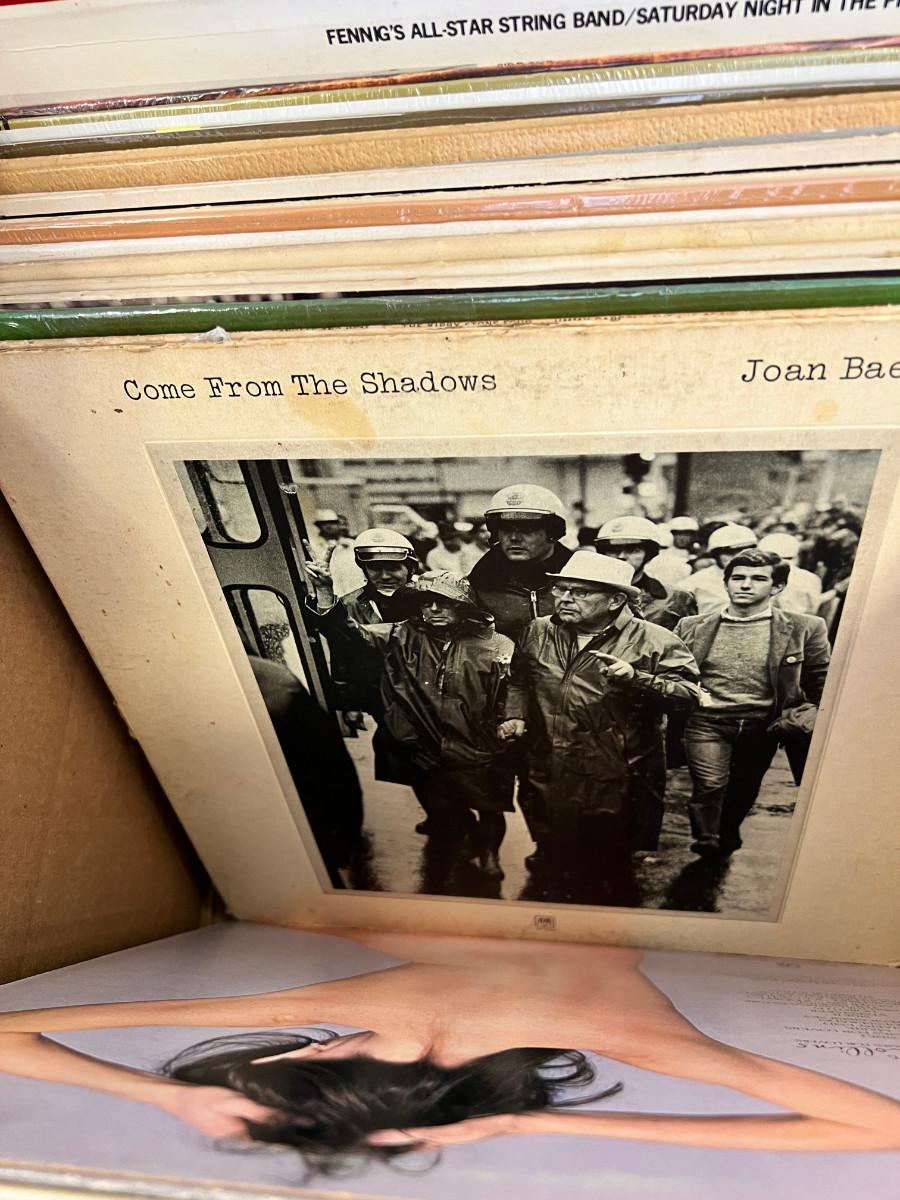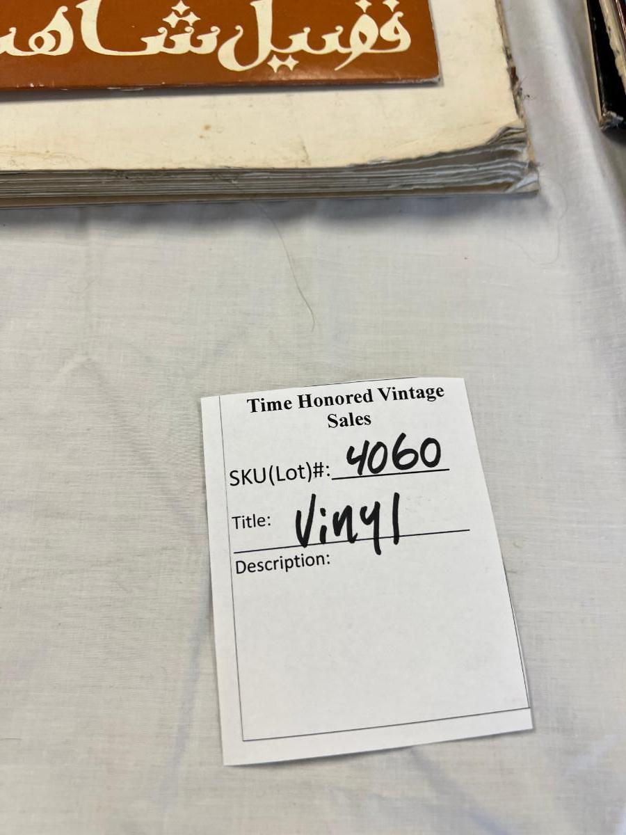 A large amount of vintage vinyl, all used. Christmas, country and rock, with some show tunes and musicals thrown in. Some unusual albums and a stack of "now playing" display poster NOS cards. No shipping