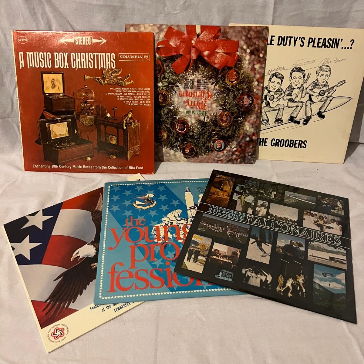 Twenty assorted vinyl 45 record and 31 assorted vinyl albums. Genres range from folk to Christmas to military themes. All sales are final. No returns or refunds. Please bid accordingly.