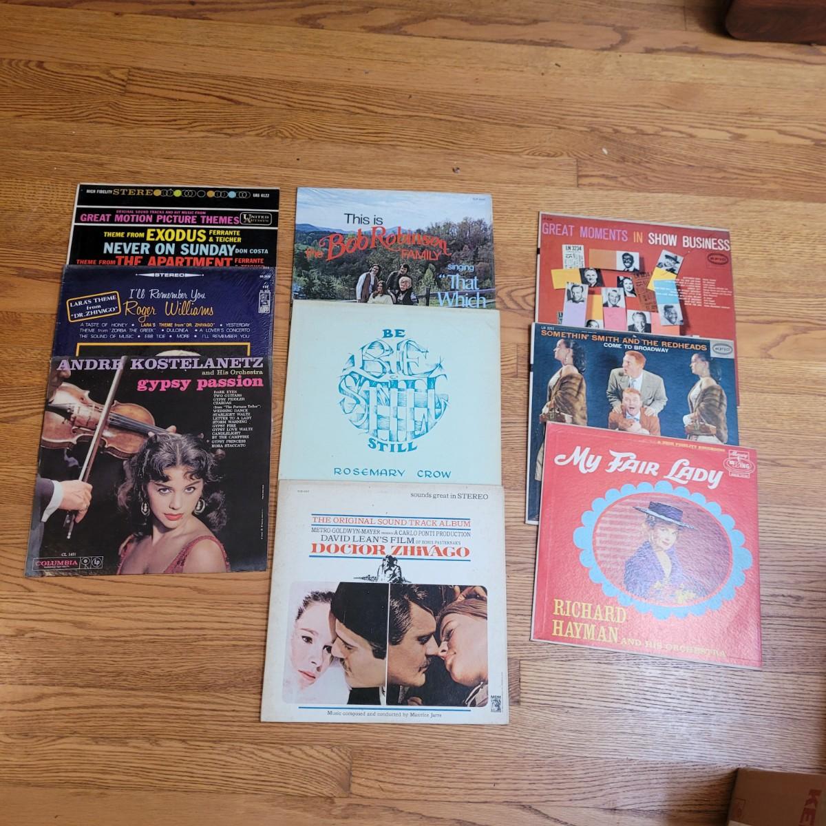 Variety of music genres including soundtracks, jazz & blues, swing & big band, soft rock, country/Americana, and others. Records show signs of use, can not verify that each record works. Shipping available.