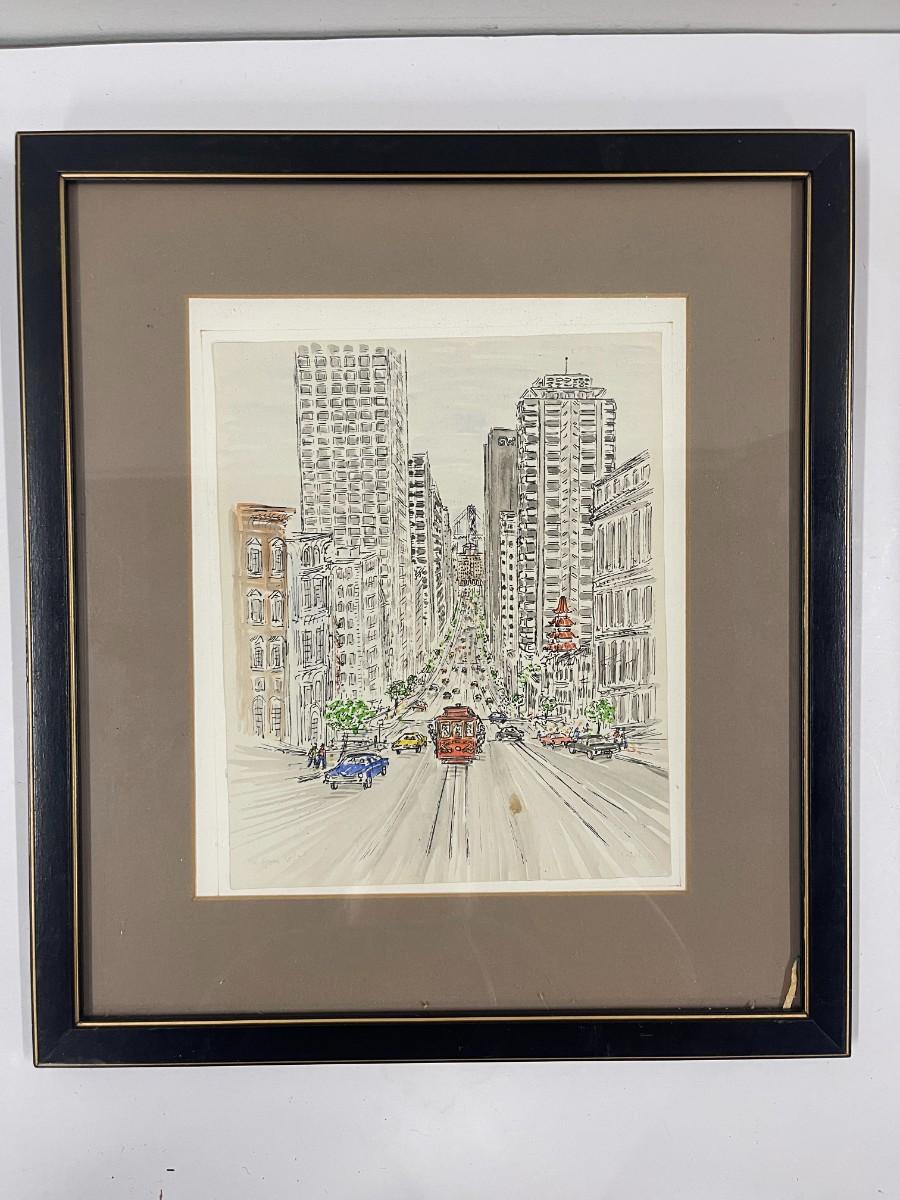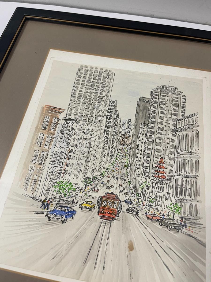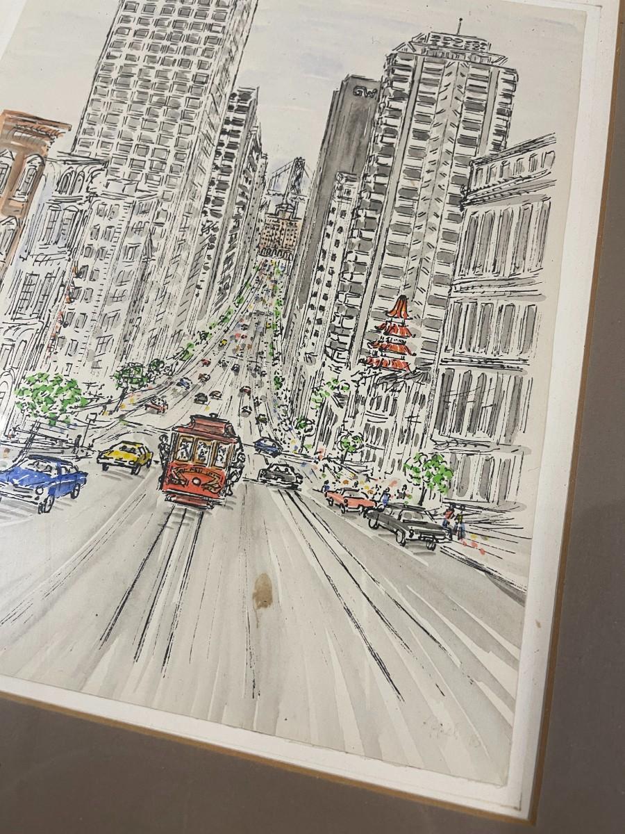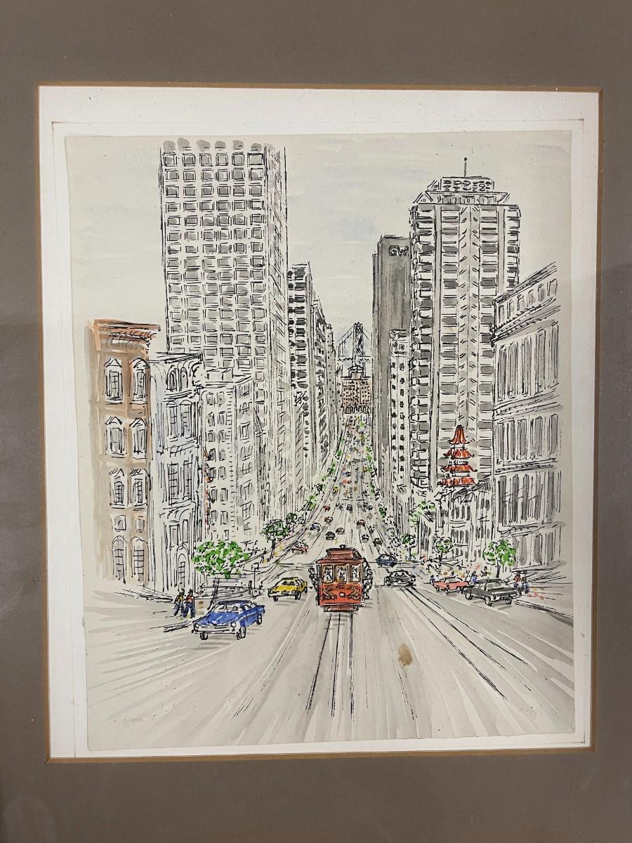 Viola Appel original painting of a San Francisco street scene. 13 1/2" x 15 1/4".