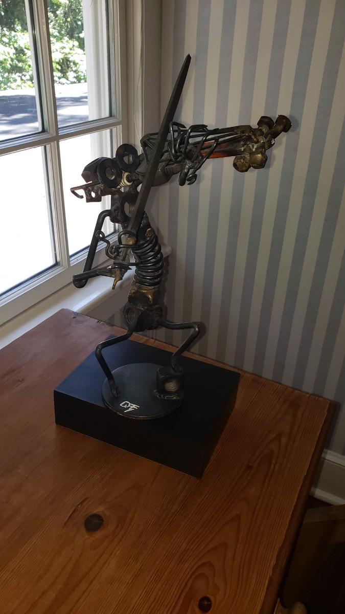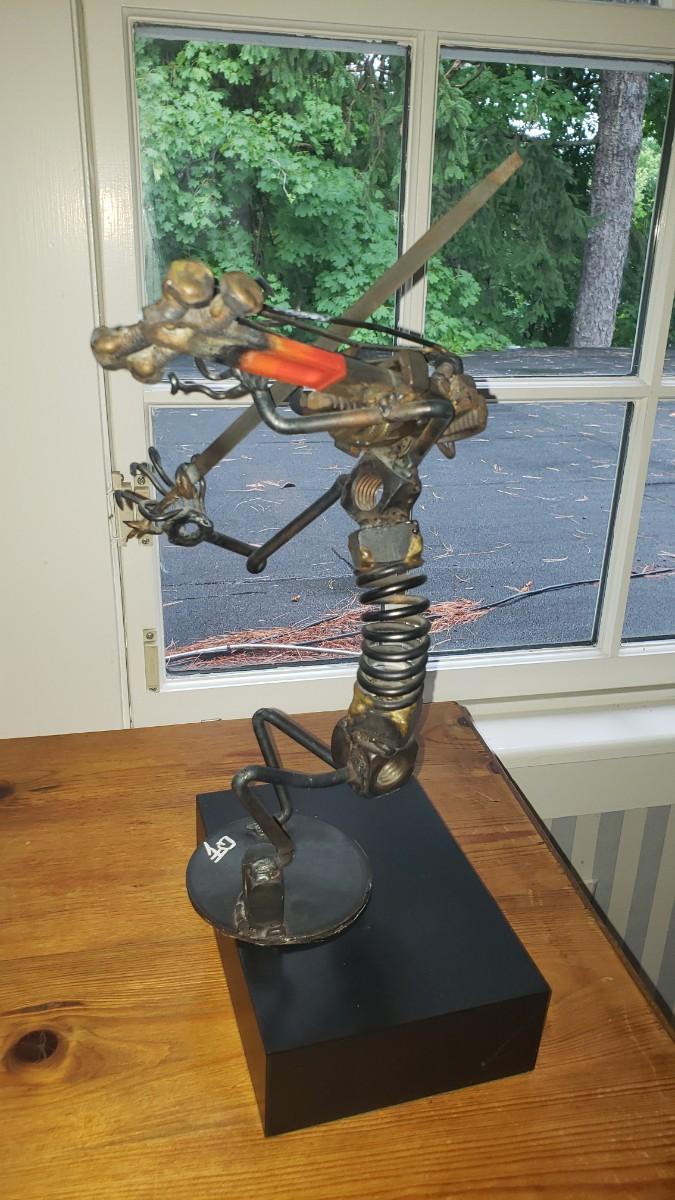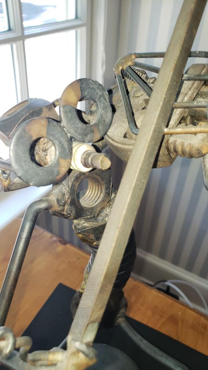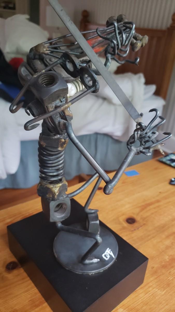 Violin player sculpture 12 in tall made of nuts and bolts
