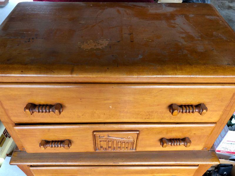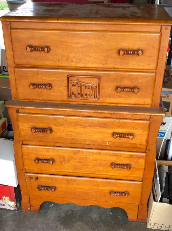 Light finish 5 Drawer Dresser by Virginia House. Has some wear to the top but in otherwise great condition.