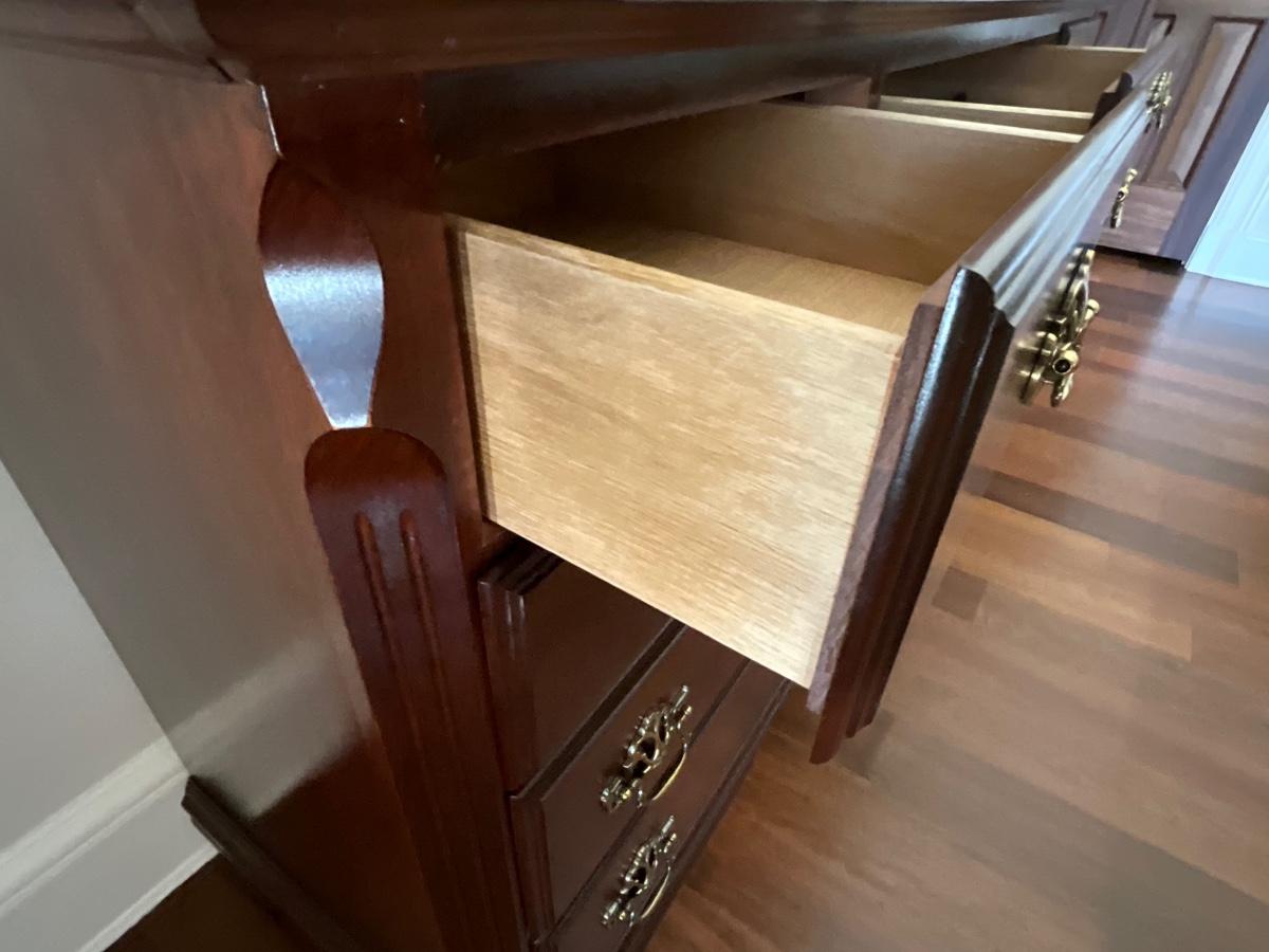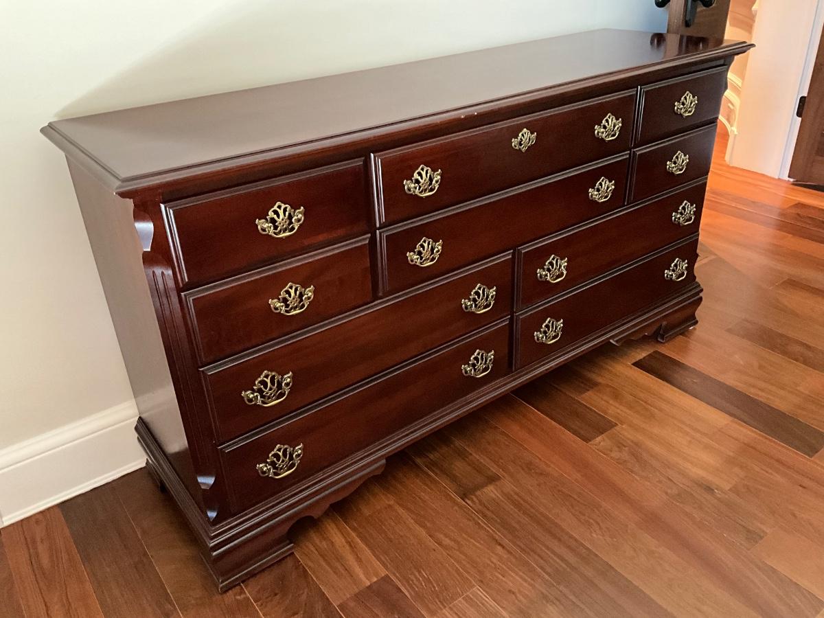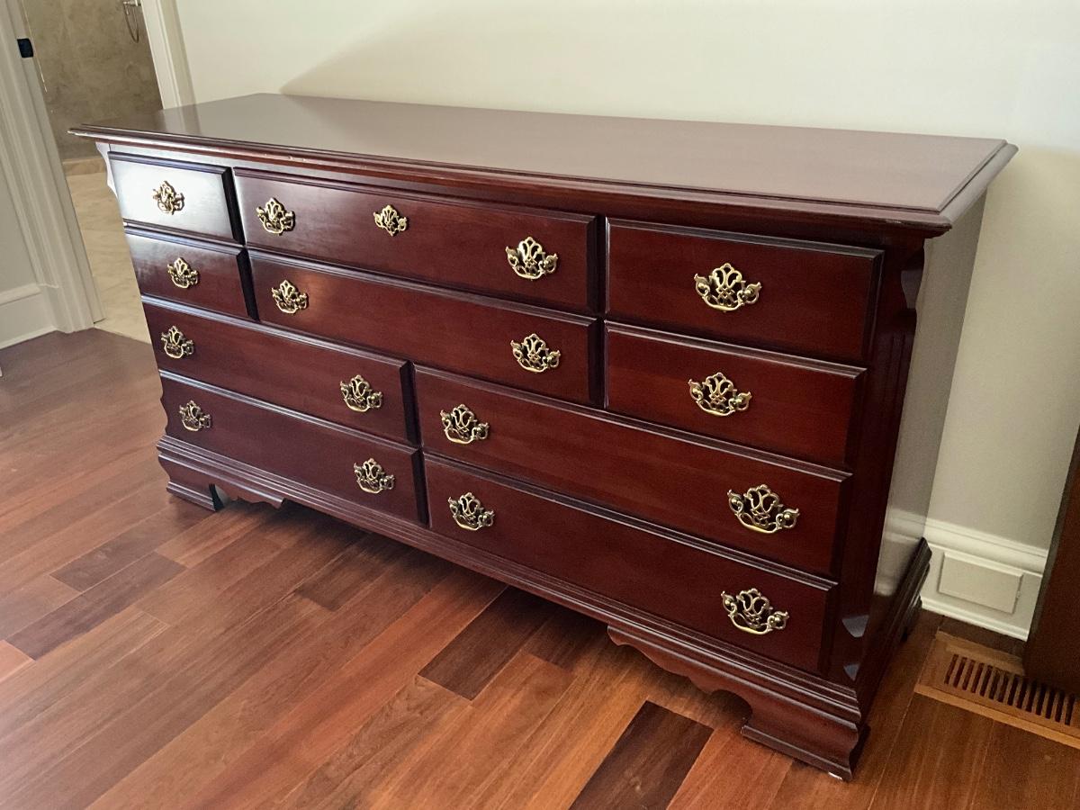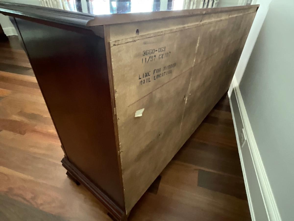 Virginia house dresser two or three small nicks. It is 19.5 inches deep 66 inches wide and 35 inches tall.