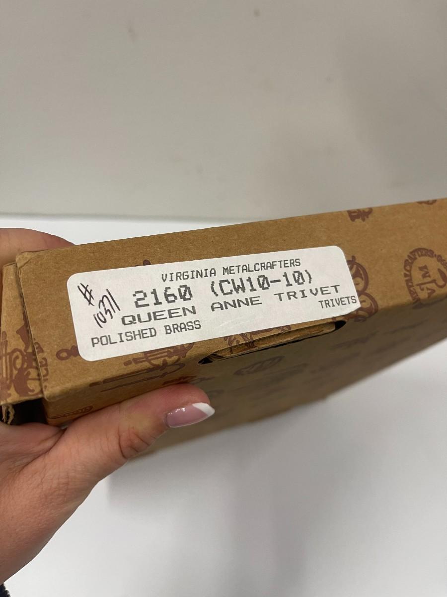Virginia Metalcrafters Brass Queen Anne Cypher Trivet, New in Box