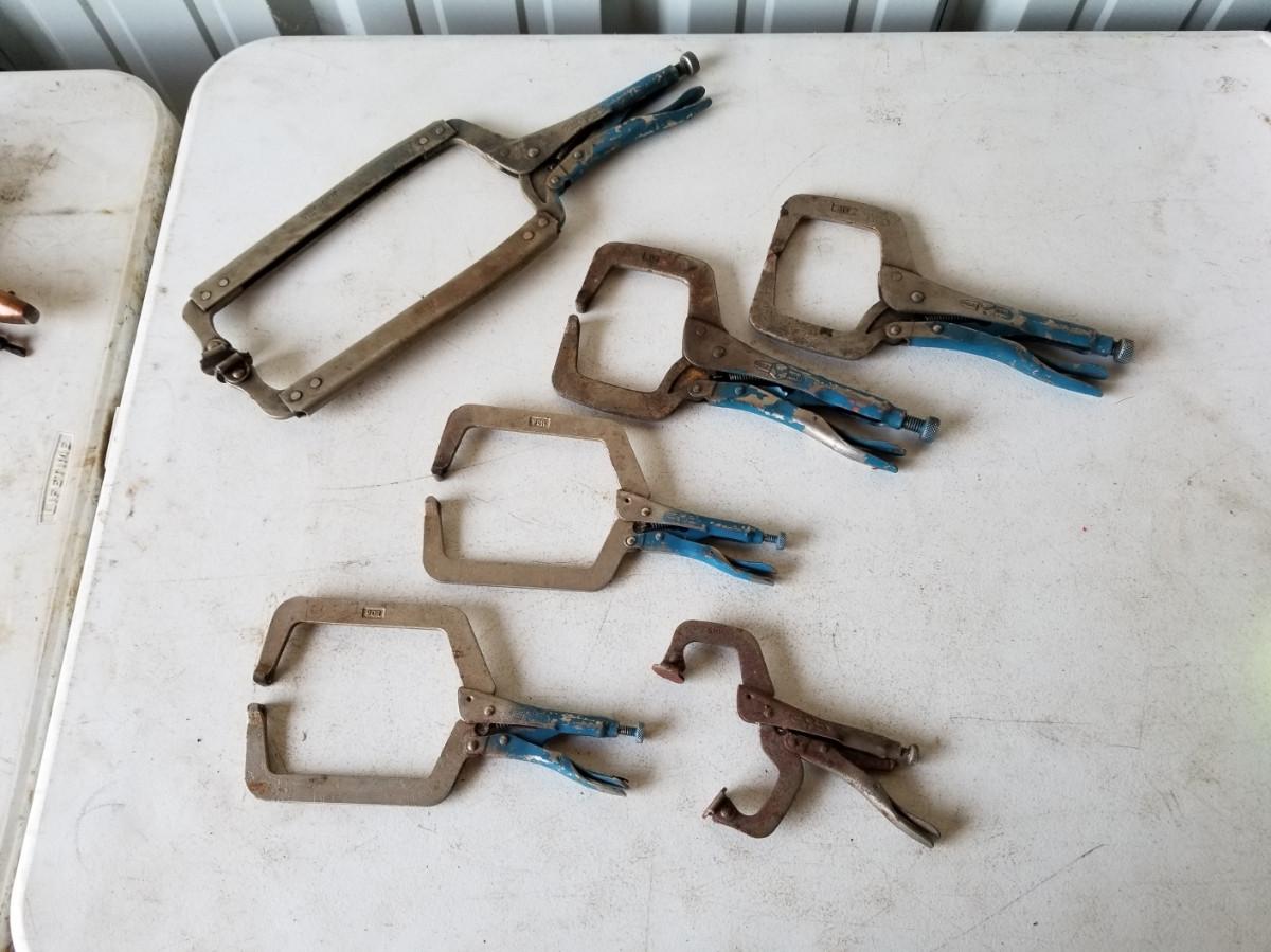 6 pairs of Vise Grip brand name pliers. See pictures for model numbers and/or sizes,
