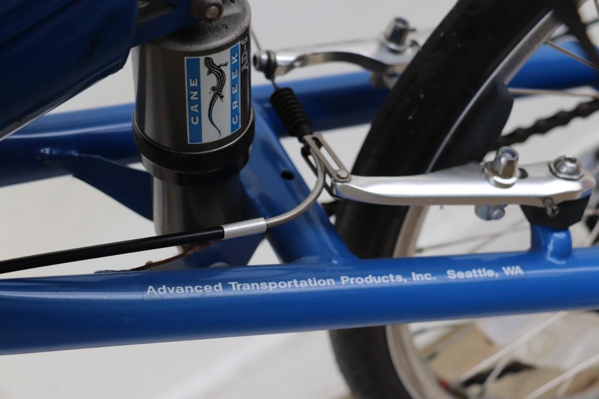 Vision Recumbent Bicycles made by Advanced Transportation Products, Inc. in Seattle, WA. Blue color. Condition as shown. Tires are a bit deflated but appear intact.