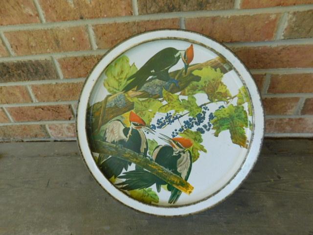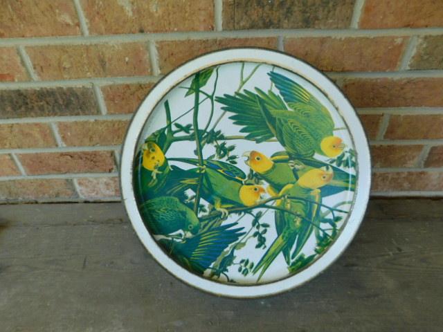 Vitage Collector Double-Sided Hand Painted Bird Scene Tin 13"x4" needs cleaning has some oxidation