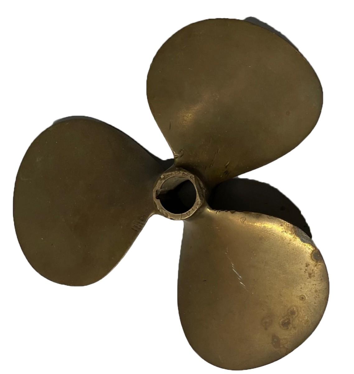 Description: VINTAGE Maritime 3-Blade Boat Propeller. Measurement approximate: 12" Diameter. Material: Brass
