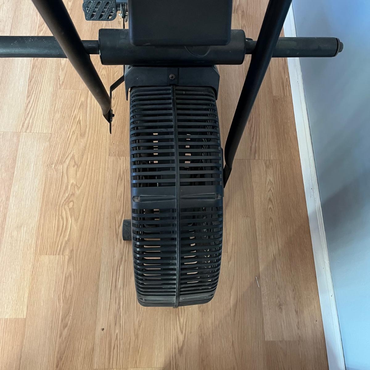 Lot includes a Vitamaster Air Max Plus exercise bicycle with upper body exerciser built in. Bicycle appears to need batteries for control panel so it was not tested. Bicycle measures 23” x 45” x 52”. Bring help Bicycle is up one flight of stairs.