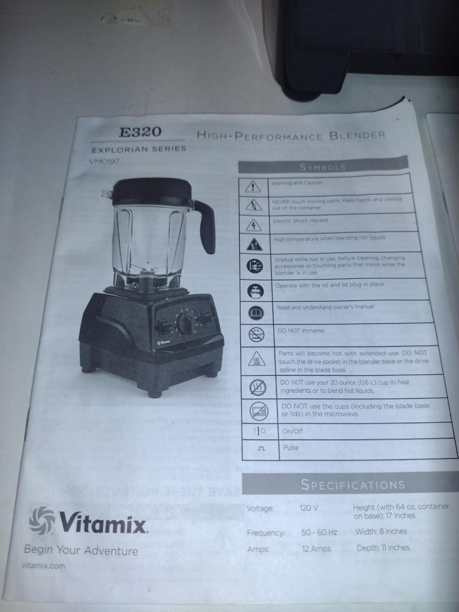 Vitamix E320 High Performance Blender with Cookbook. Item appears to be in working condition.