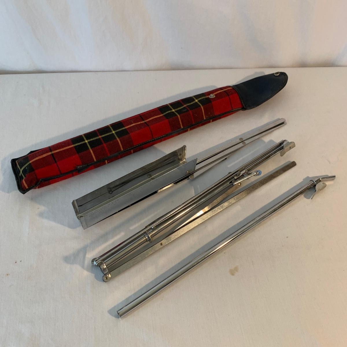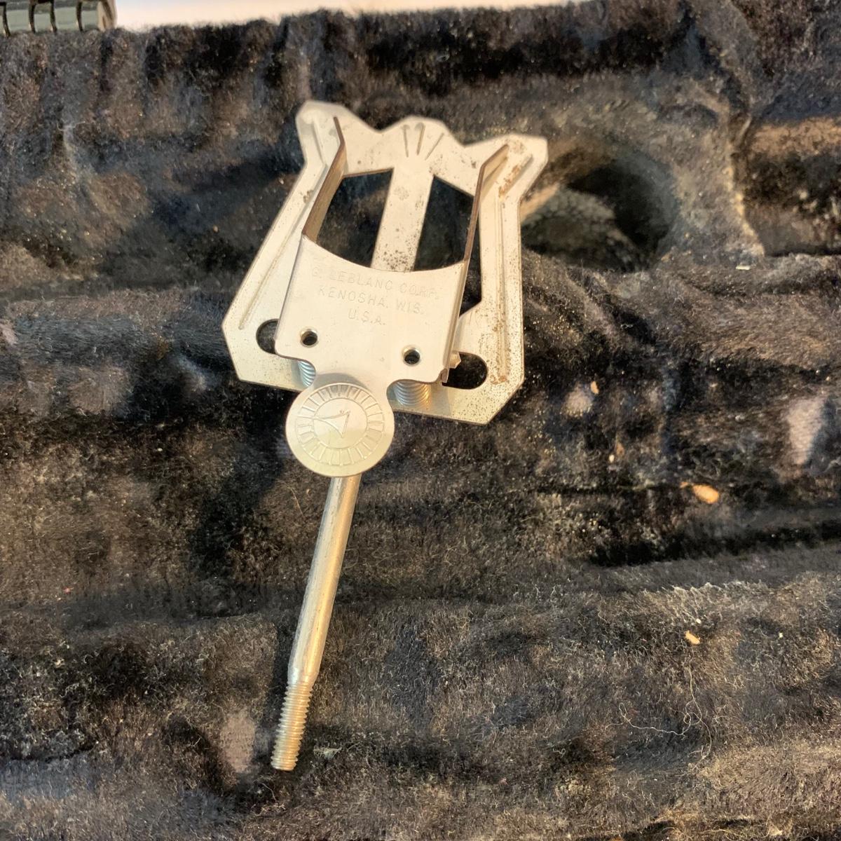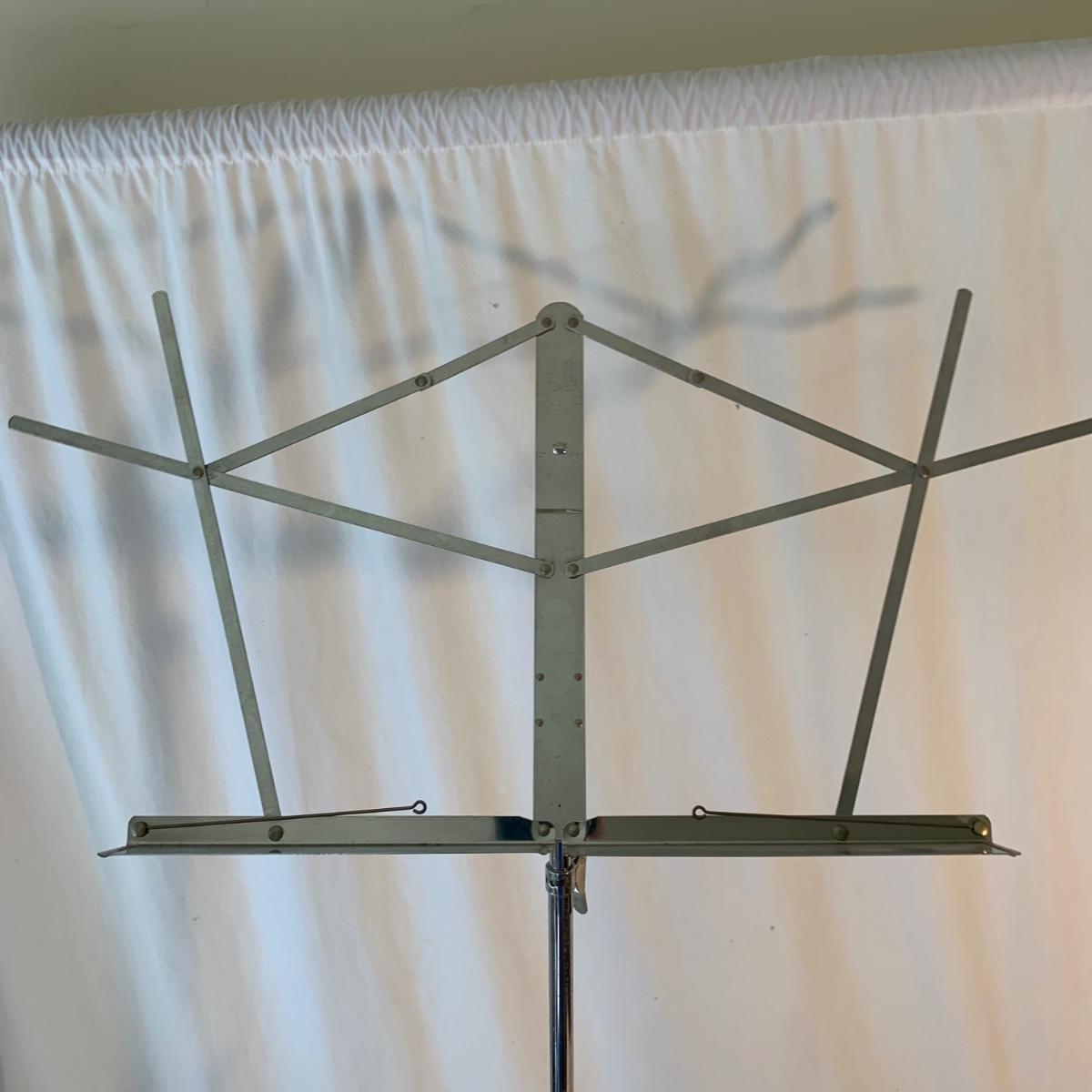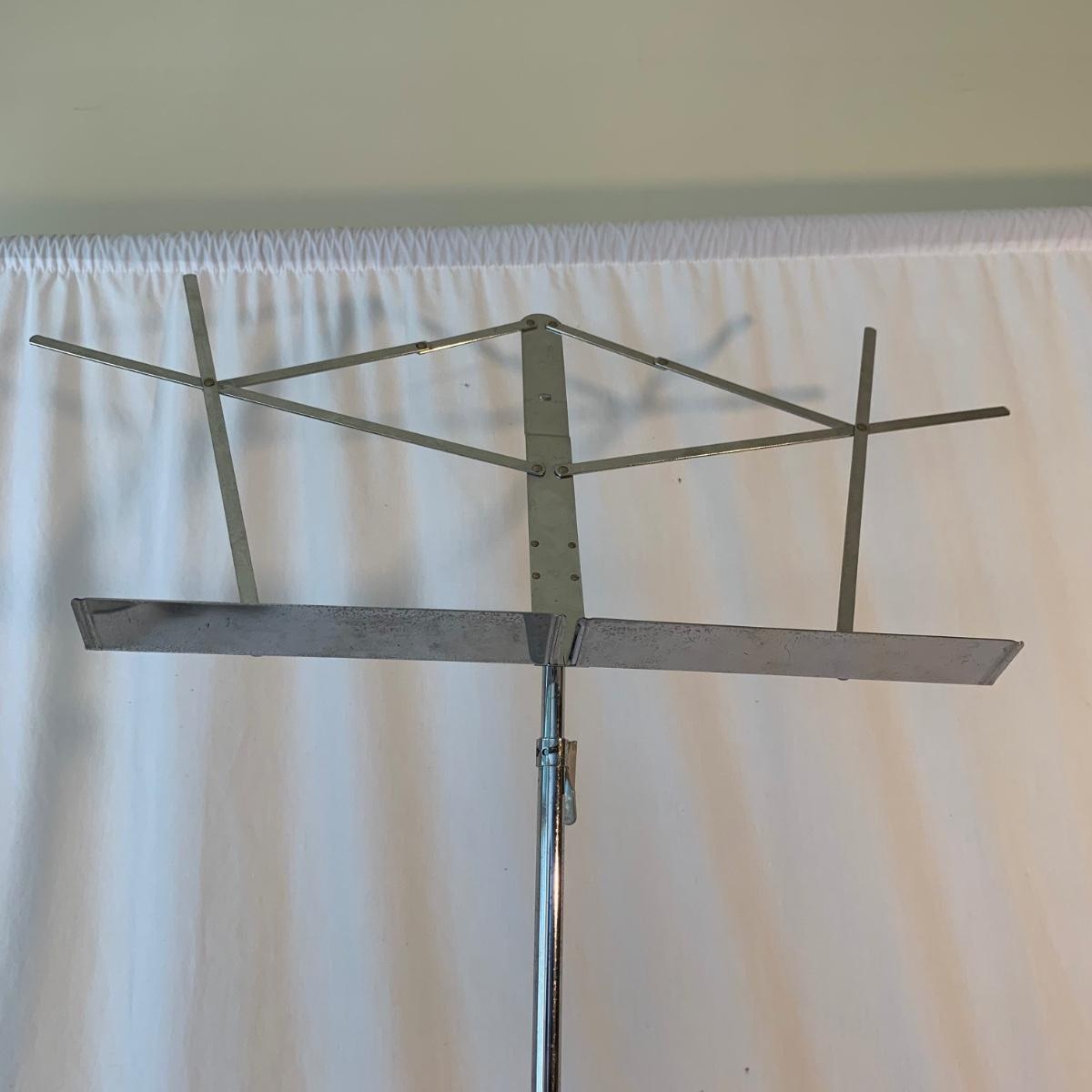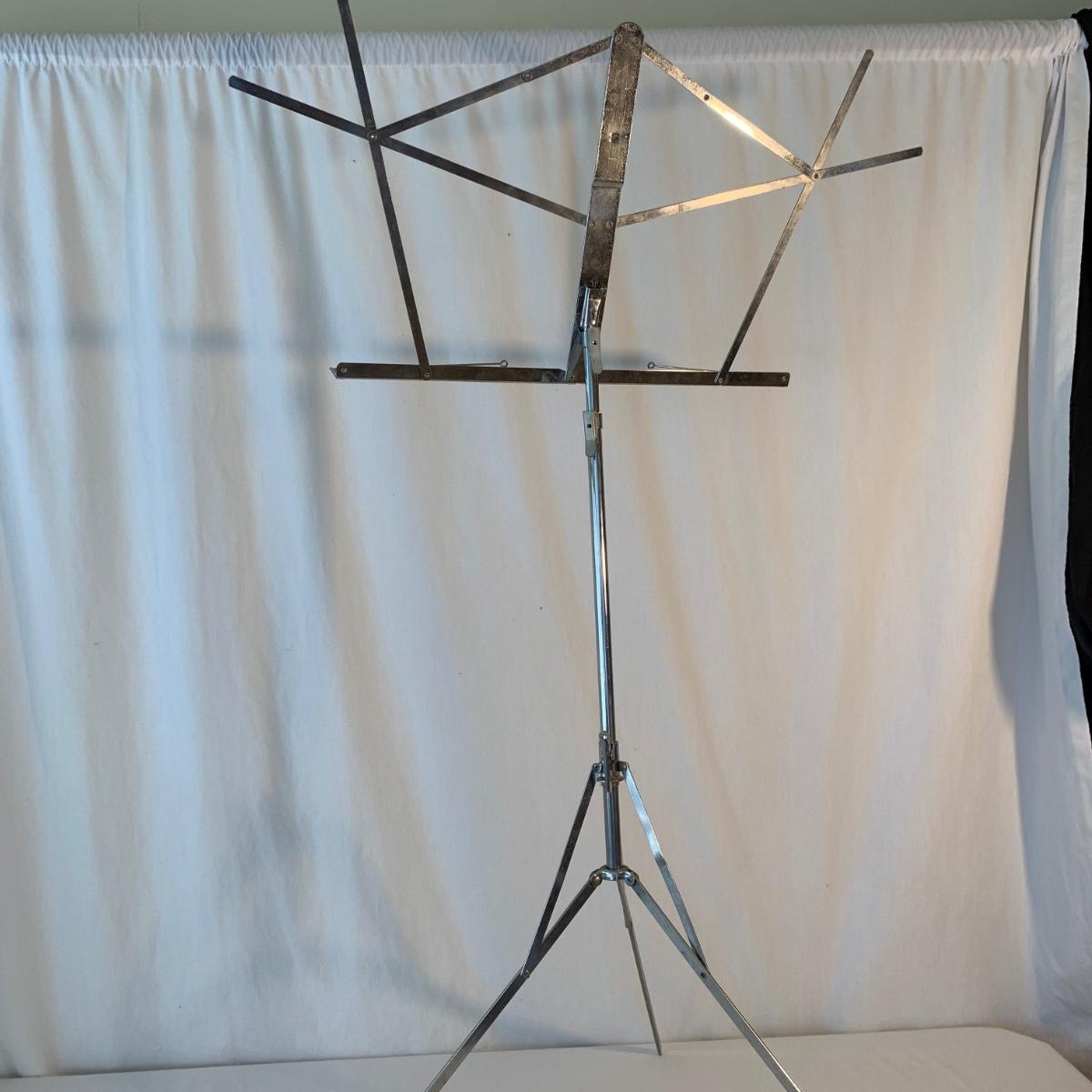 Vito-Reso 3 clarinet in a hard plastic case with velour inner lining. Eleven reeds in plastic cases are included. Clarinet parts fit together easily. It appears to be in good condition, just a bit dusty. The case measures 13” x 3.75” x 8”. The Hamilton brand metal music stand is included. It disassembles into three pieces. The stand is adjustable in height. It comes in a plaid fabric case. The music stand is in good condition. Shipping available.