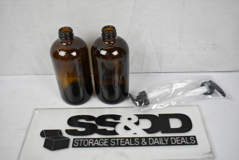 Vivaplex, 2, Large, 16 oz Amber Glass Bottles with Lotion Pumps - New