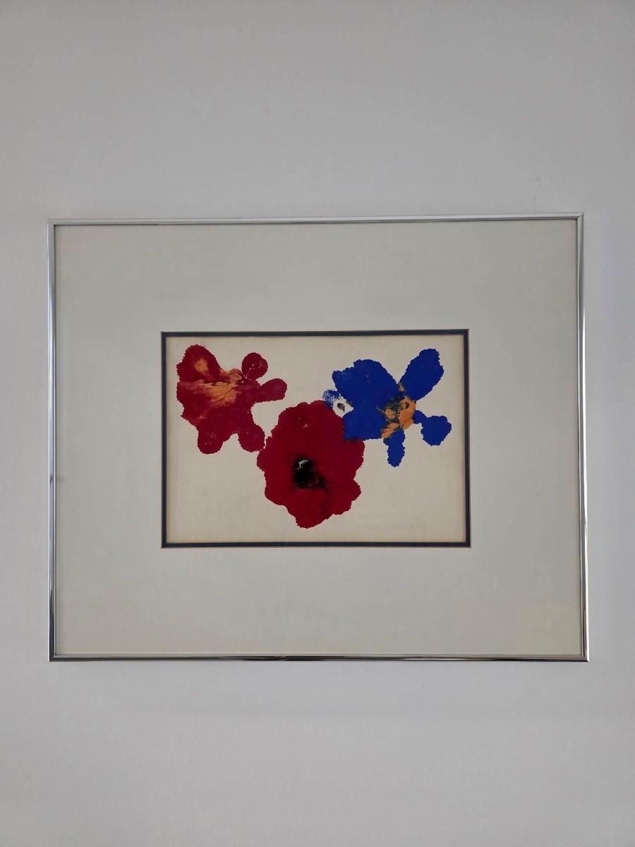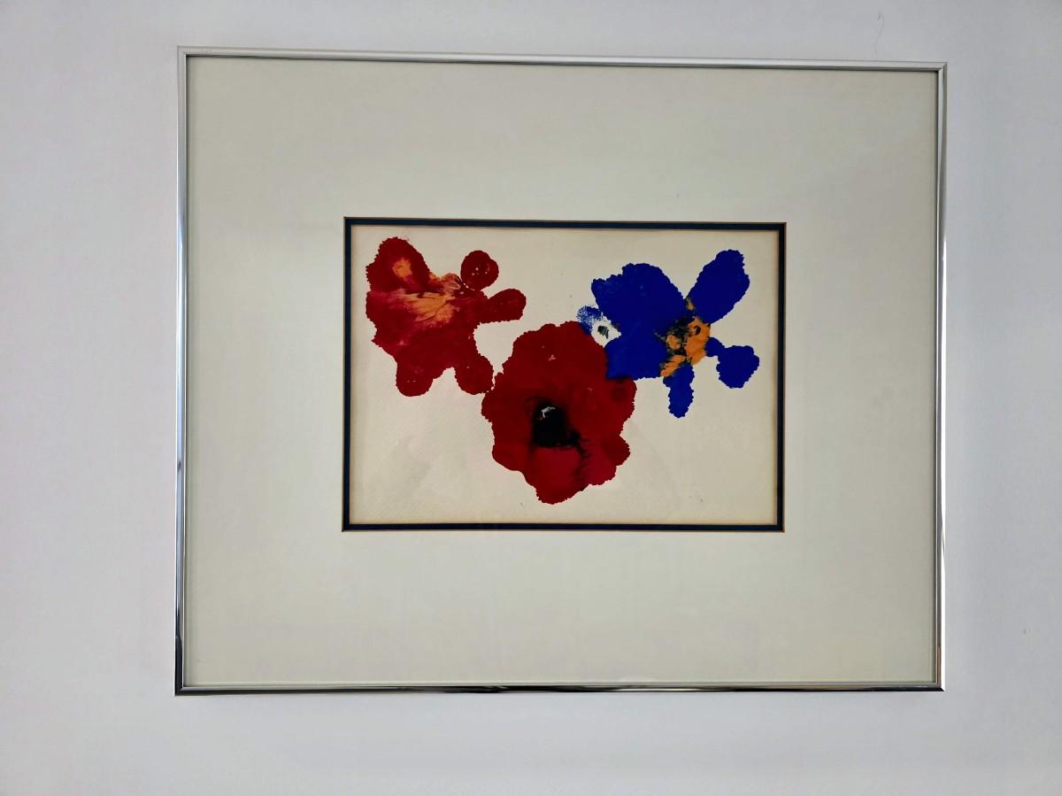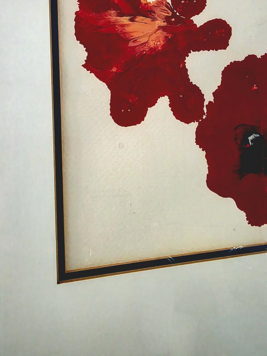 Vivid contemporary floral art #1 unsigned, framed and matted. My understanding is that this piece was made by and for a children's medical charity fundraiser event. The frame measures 23"L x 19"H.