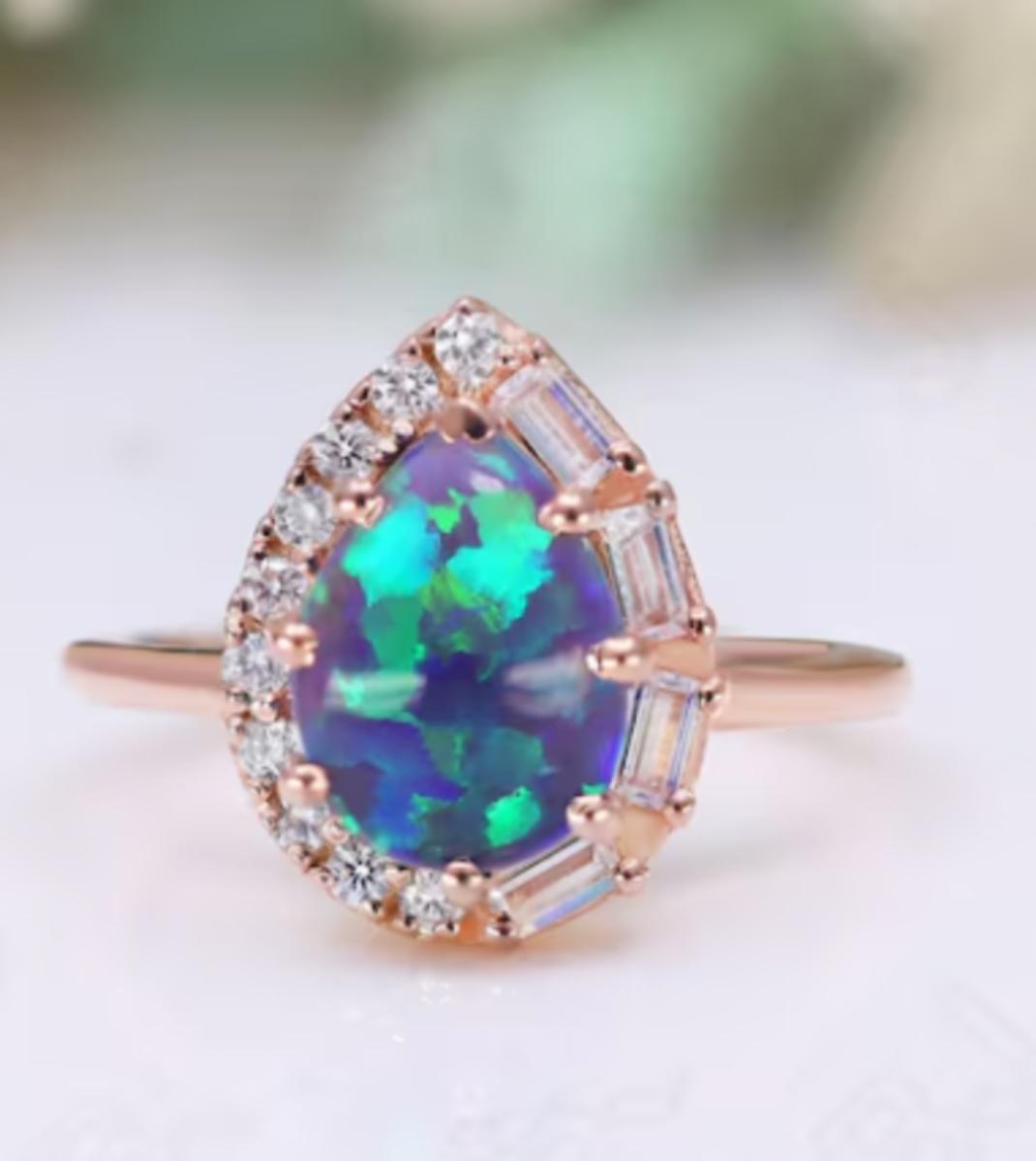 Vivid Northern Lights Pear Opal 14K Rose Gold 925 Silver