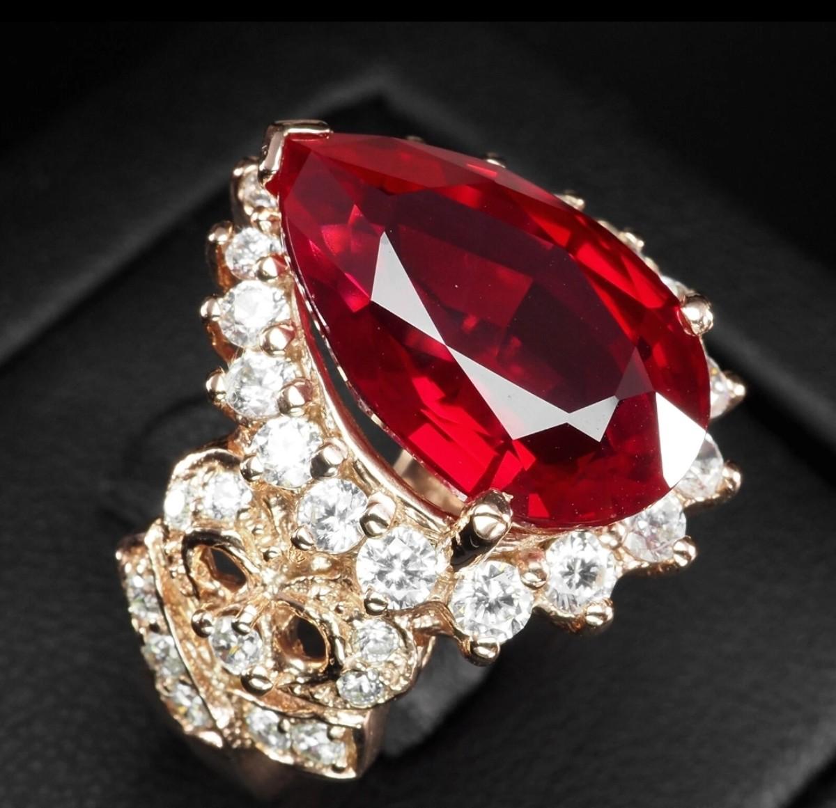 Vivid Red Rubellite Tourmaline Pear 14.70Ct 925 Sterling Silver Ring