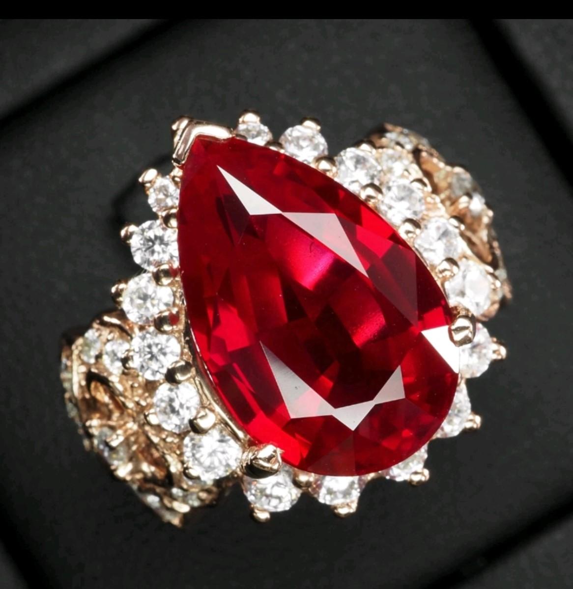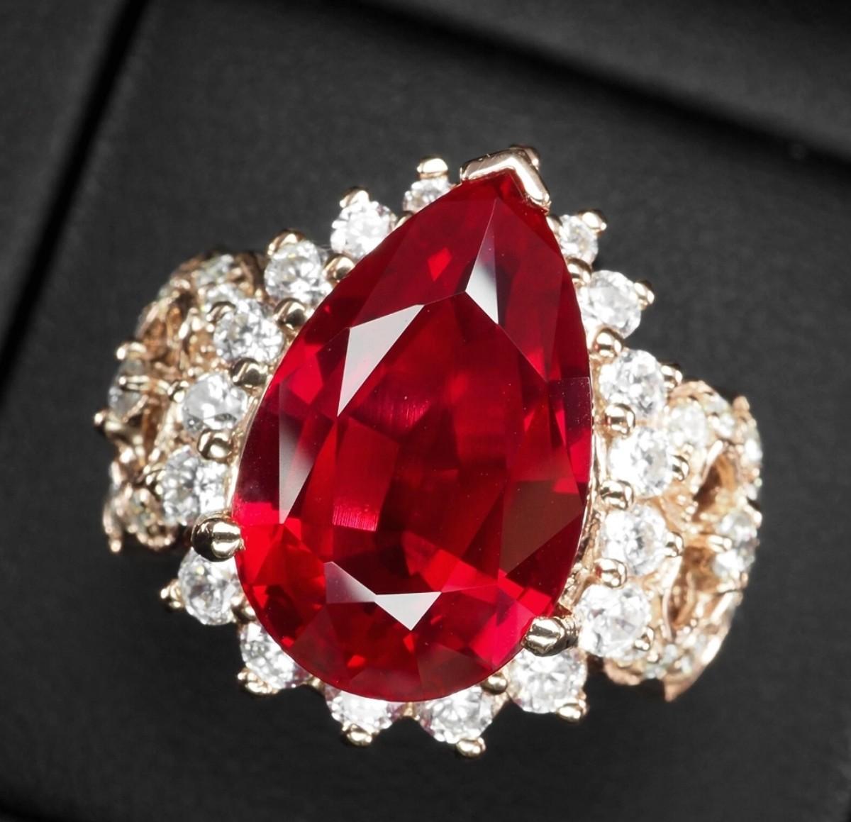 Vivid Red Rubellite Tourmaline Pear 14.70Ct 925 Sterling Silver Ring