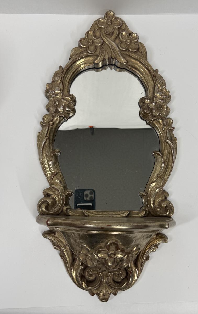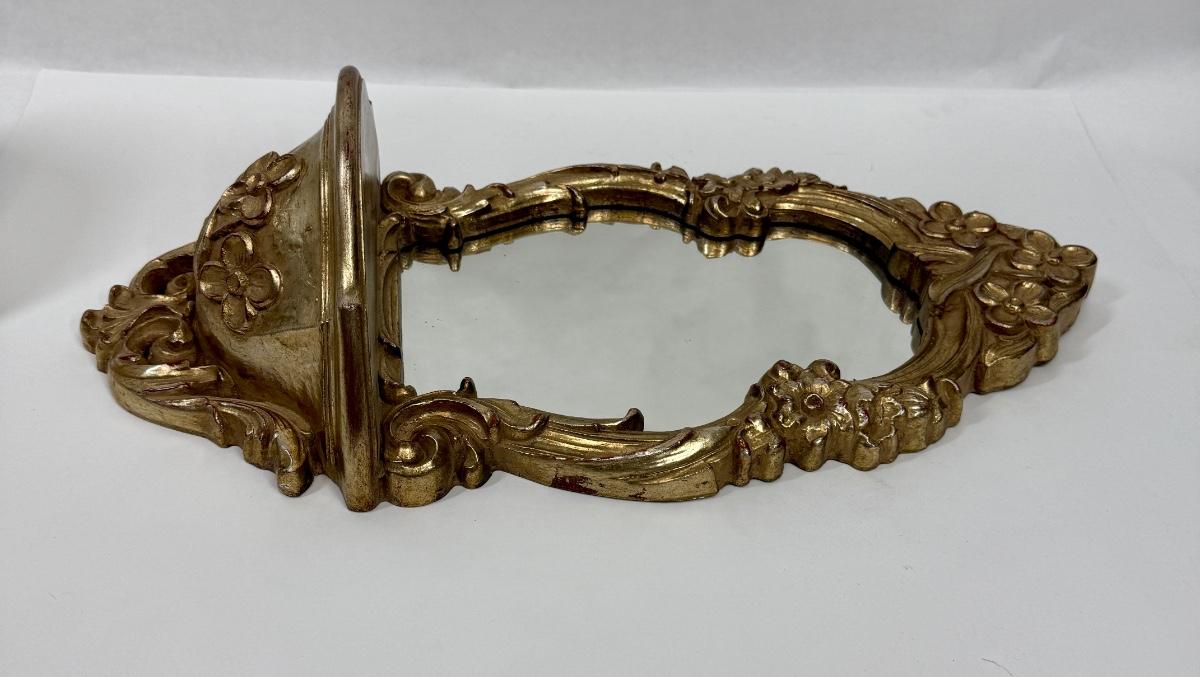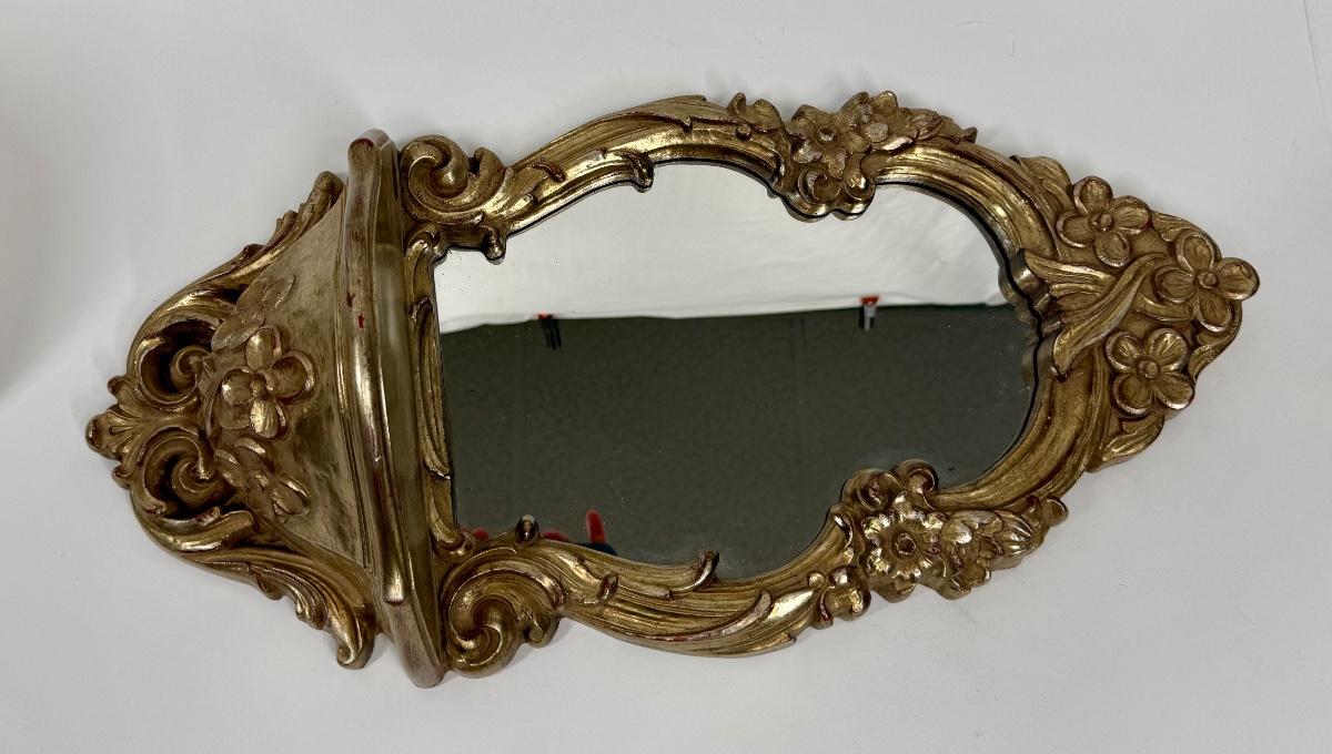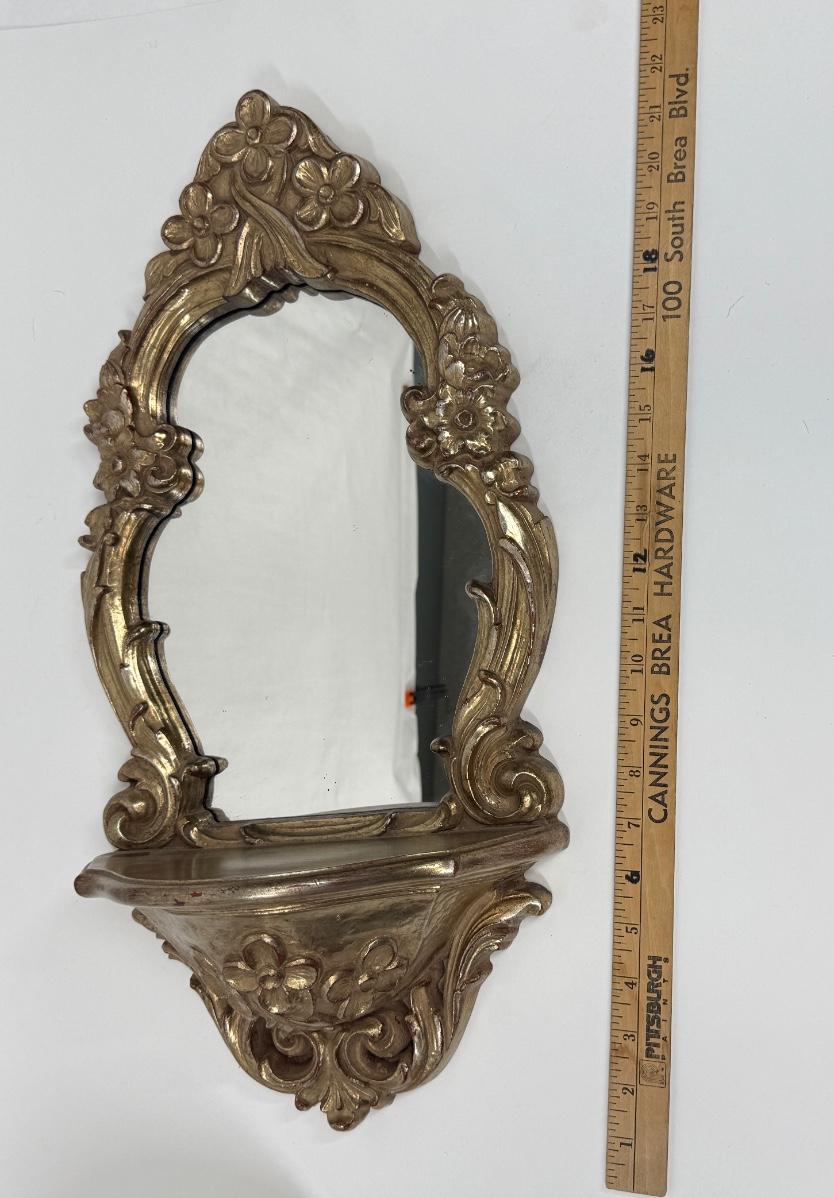 Hollywood Regency 1970's Ornate Gold Rococo Mirror and Shelf for Wall