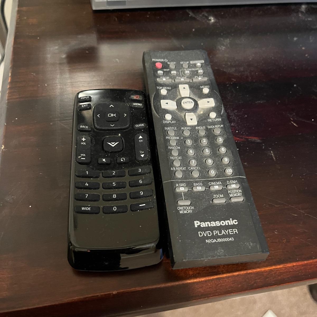 Lot includes a 24” Vizio TV with remote control and a Panasonic DVD player with remote control. DVD player measures 10” x 17” x 2.5”H. Both items powered on when plugged in. Remote controls were not tested.