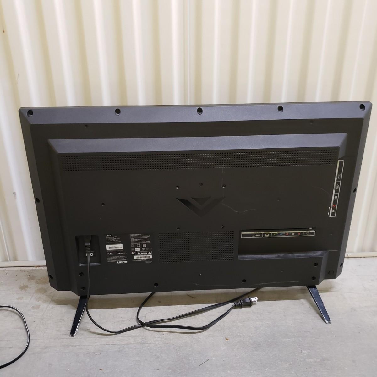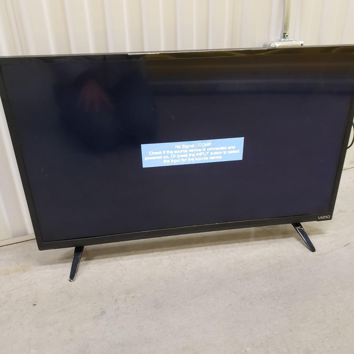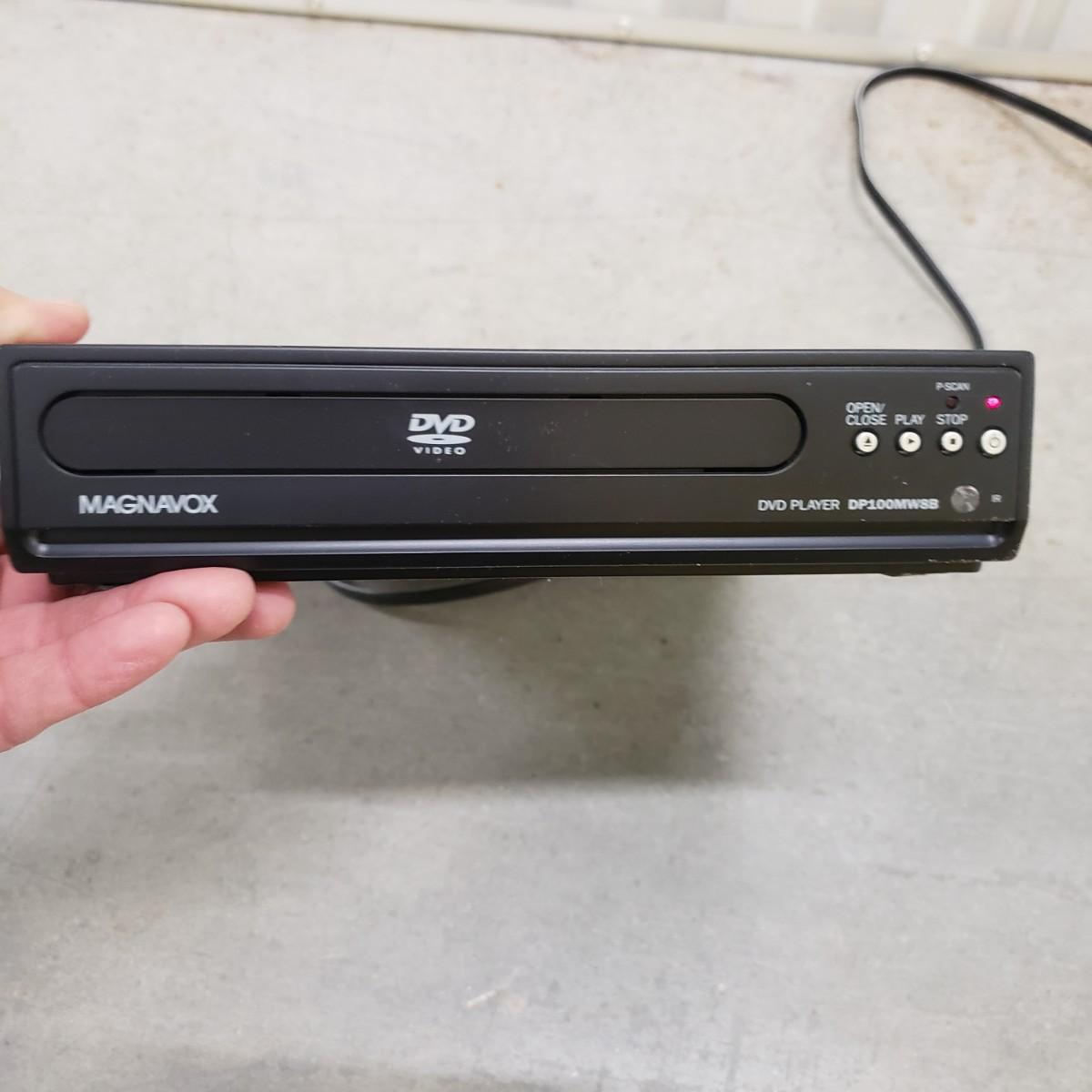 This Vizio 32" TV, has a remote and powers on when plugged in. The remote takes two AAA batteries. See pictures for details. The Magnavox DVD player powers on when plugged in and has a remote that takes two AA batteries. The TV comes with an instruction manual and a cord to connect the DVD to the TV.