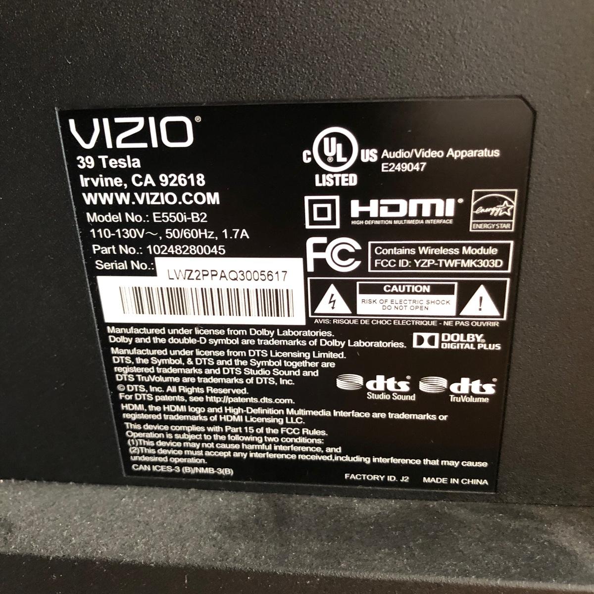 This lot offers a VIZIO 55” smart T.V. Model # E550I-B2. It’s in good, clean condition and includes a remote control. Powered on when tested. Local pickup only.