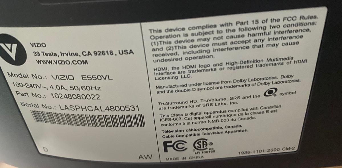 Vizio 55” TV