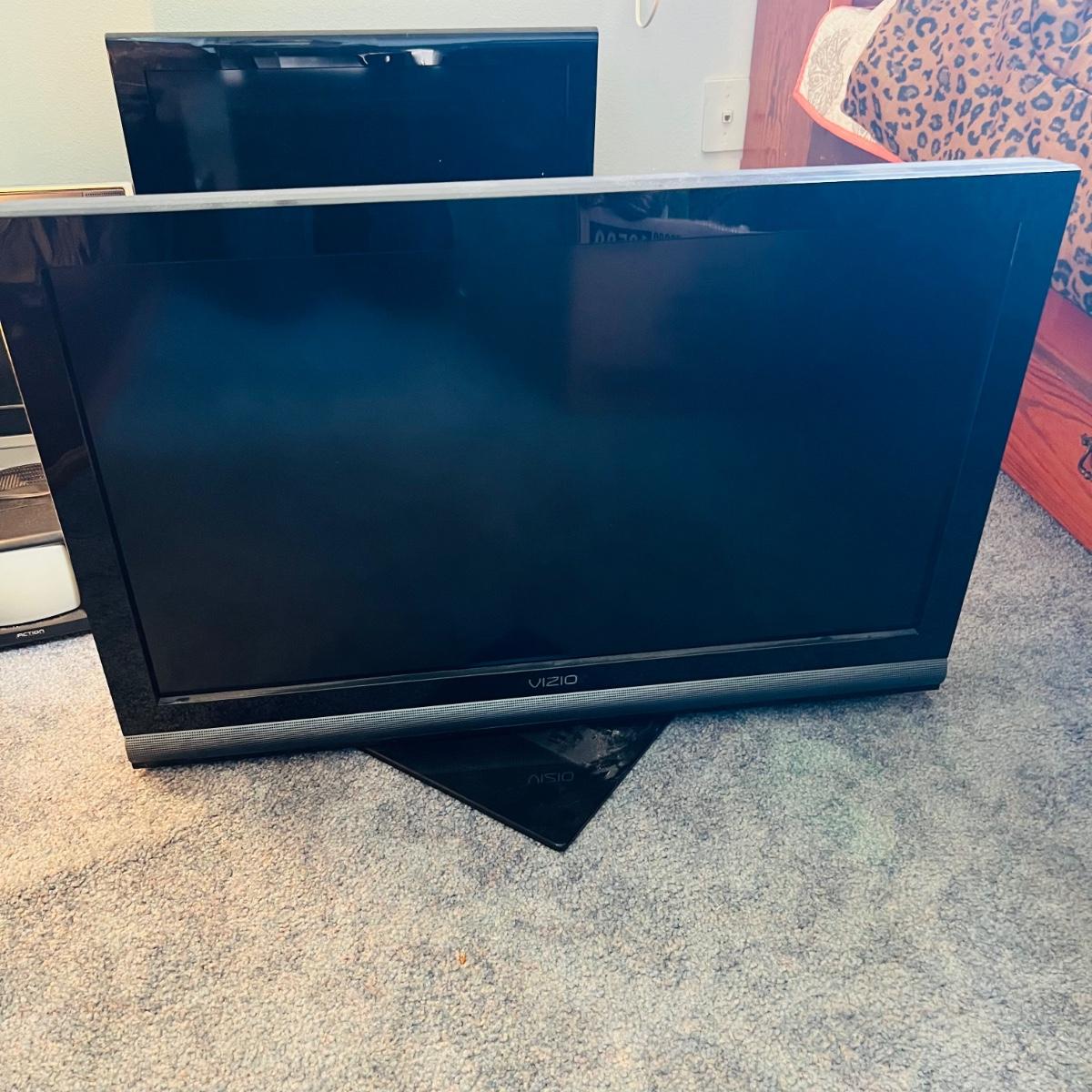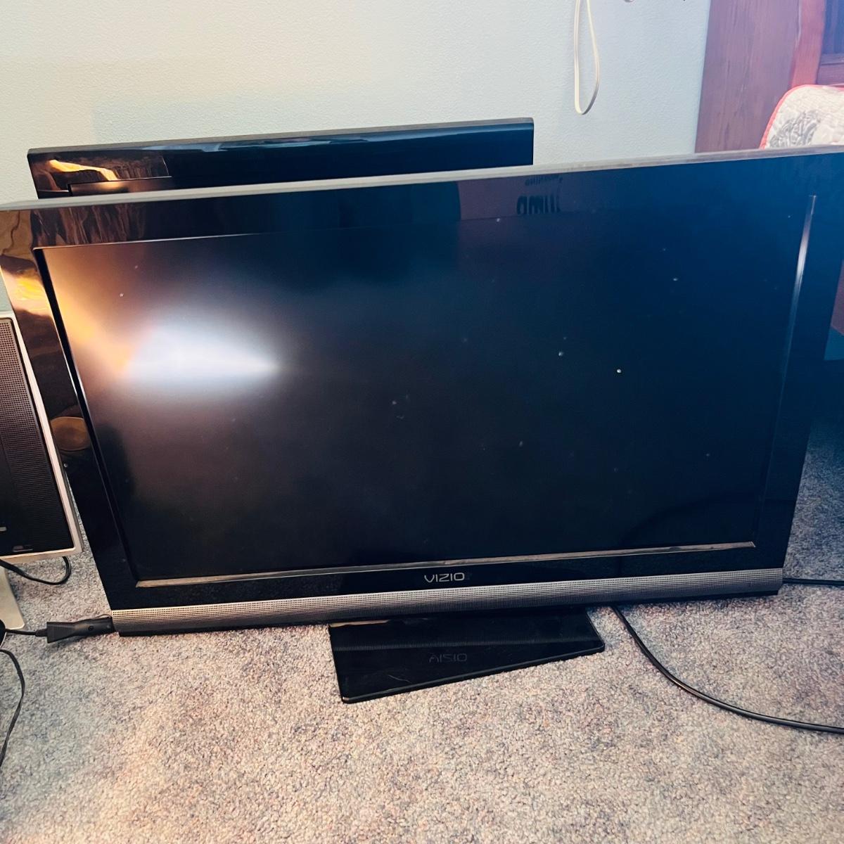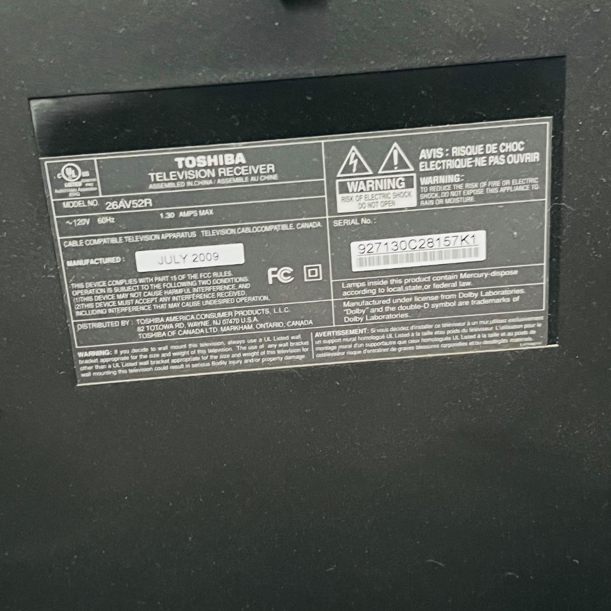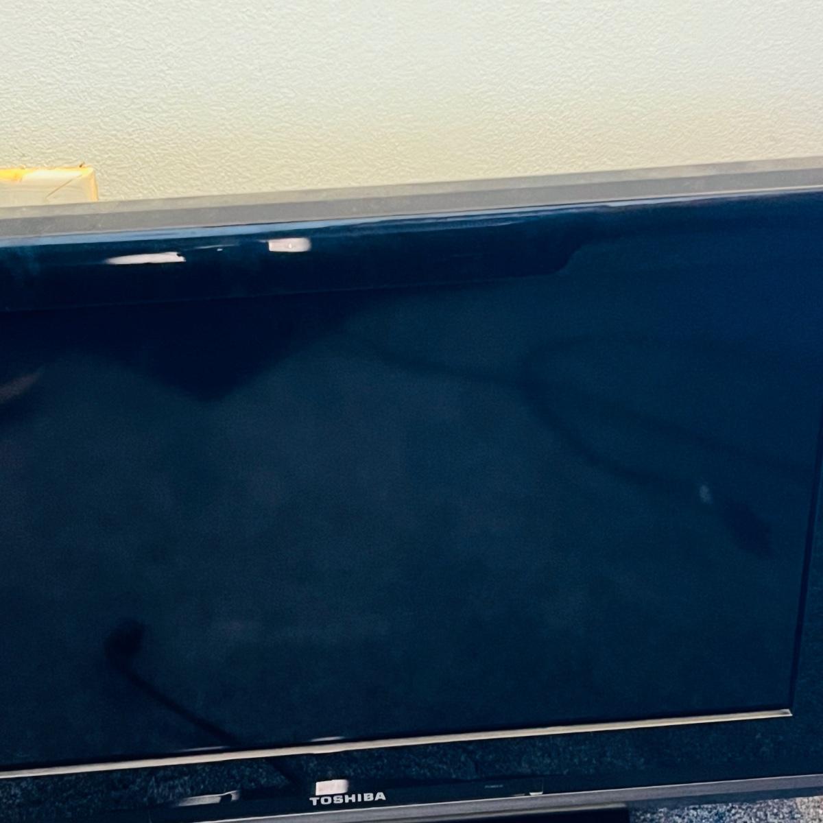 36” Toshiba TV on a swivel stand and a 31” Toshiba TV. Both turn on when plugged in.