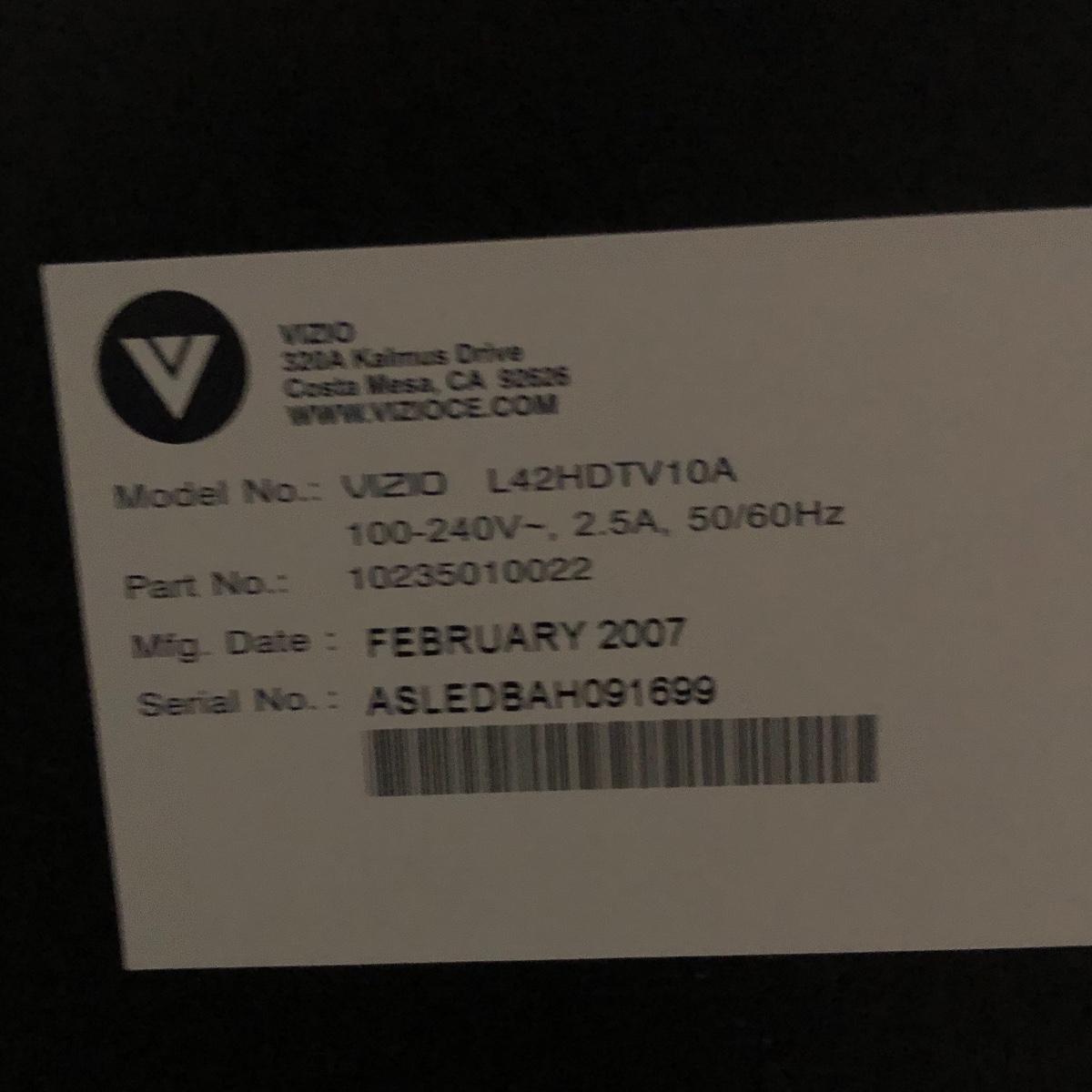 41" VIZIO HDMI HDTV TV w/Remote, Model # L42HDTV. 10A (MB-KM)