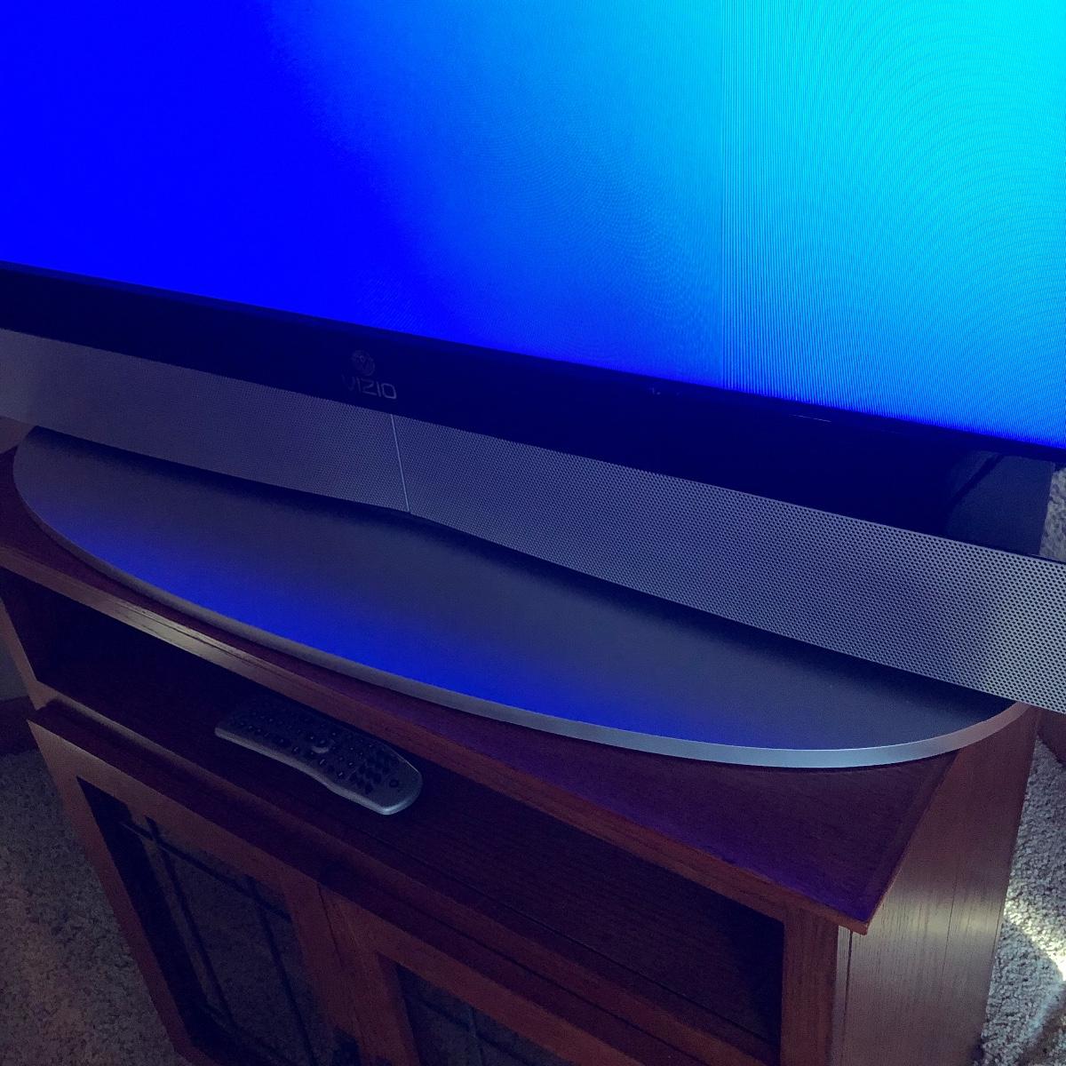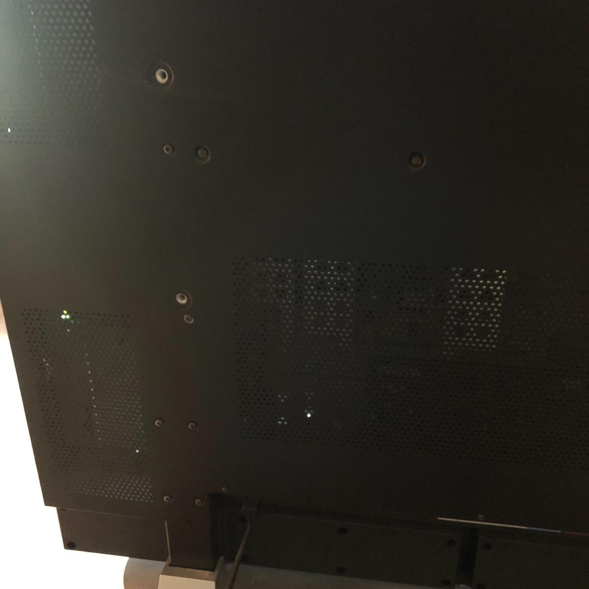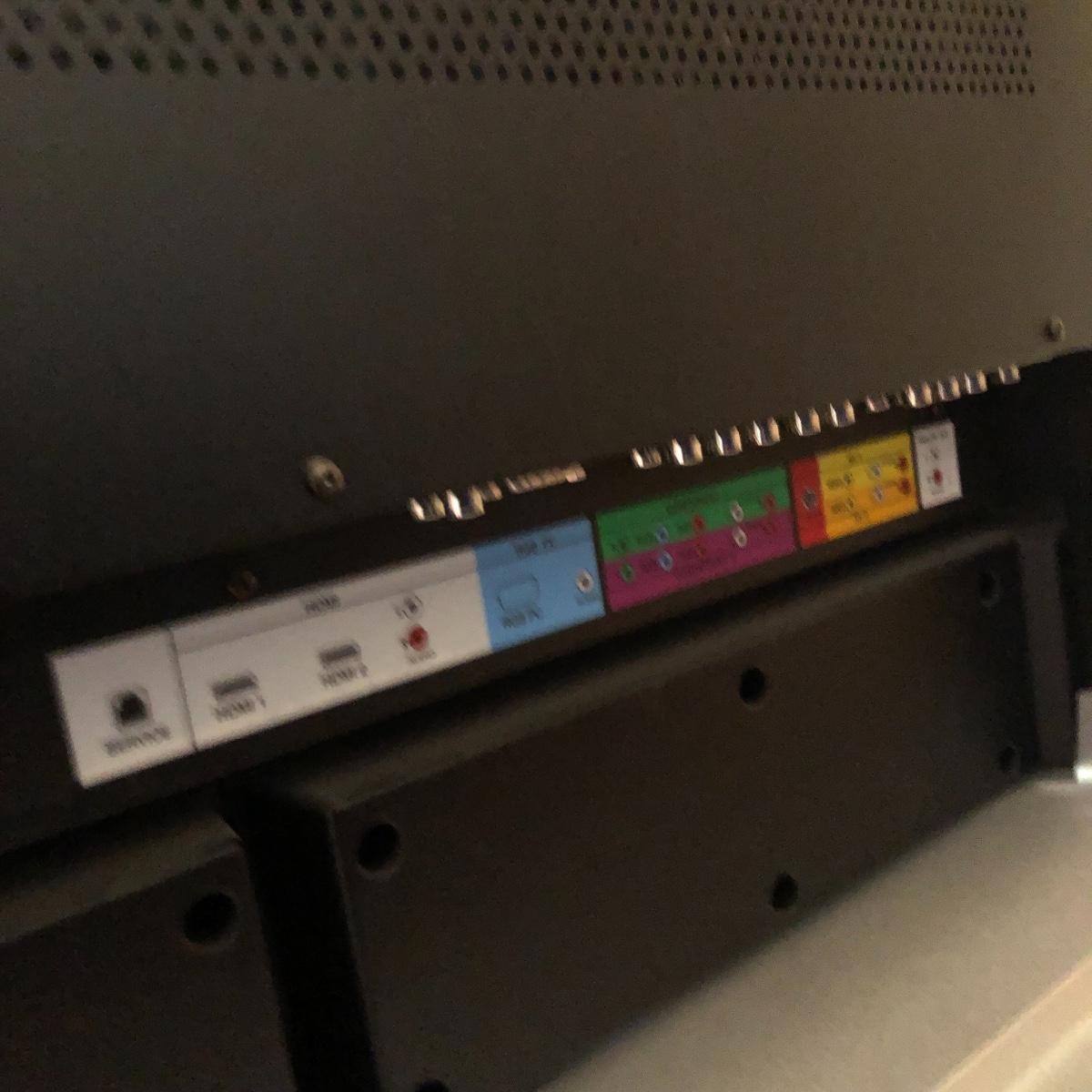 TV operates when plugged in. The screen measures 41” and the TV measures 42” x 4.5” x 28.5”. The TV is on a silver stand and comes with a remote. Local pick up only.