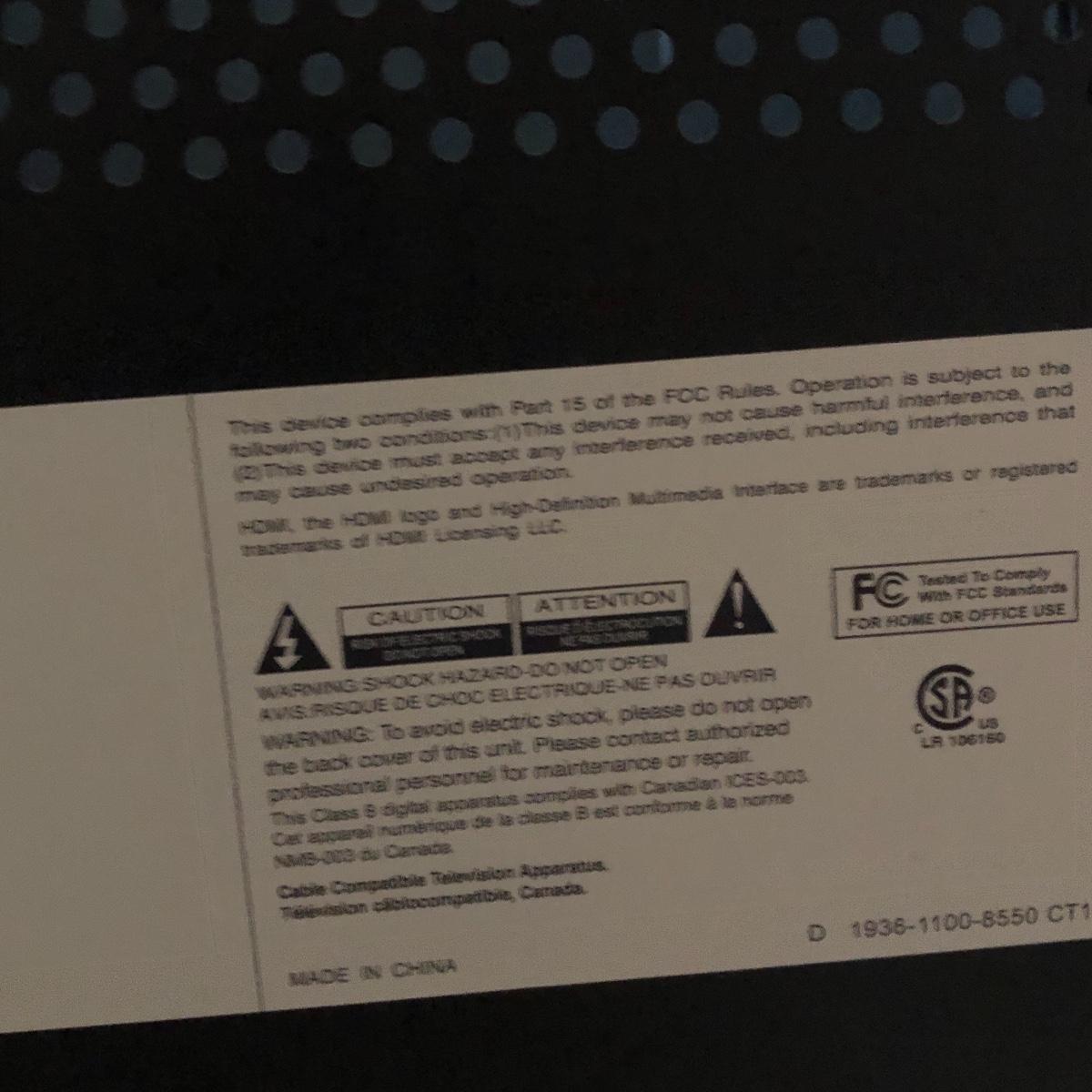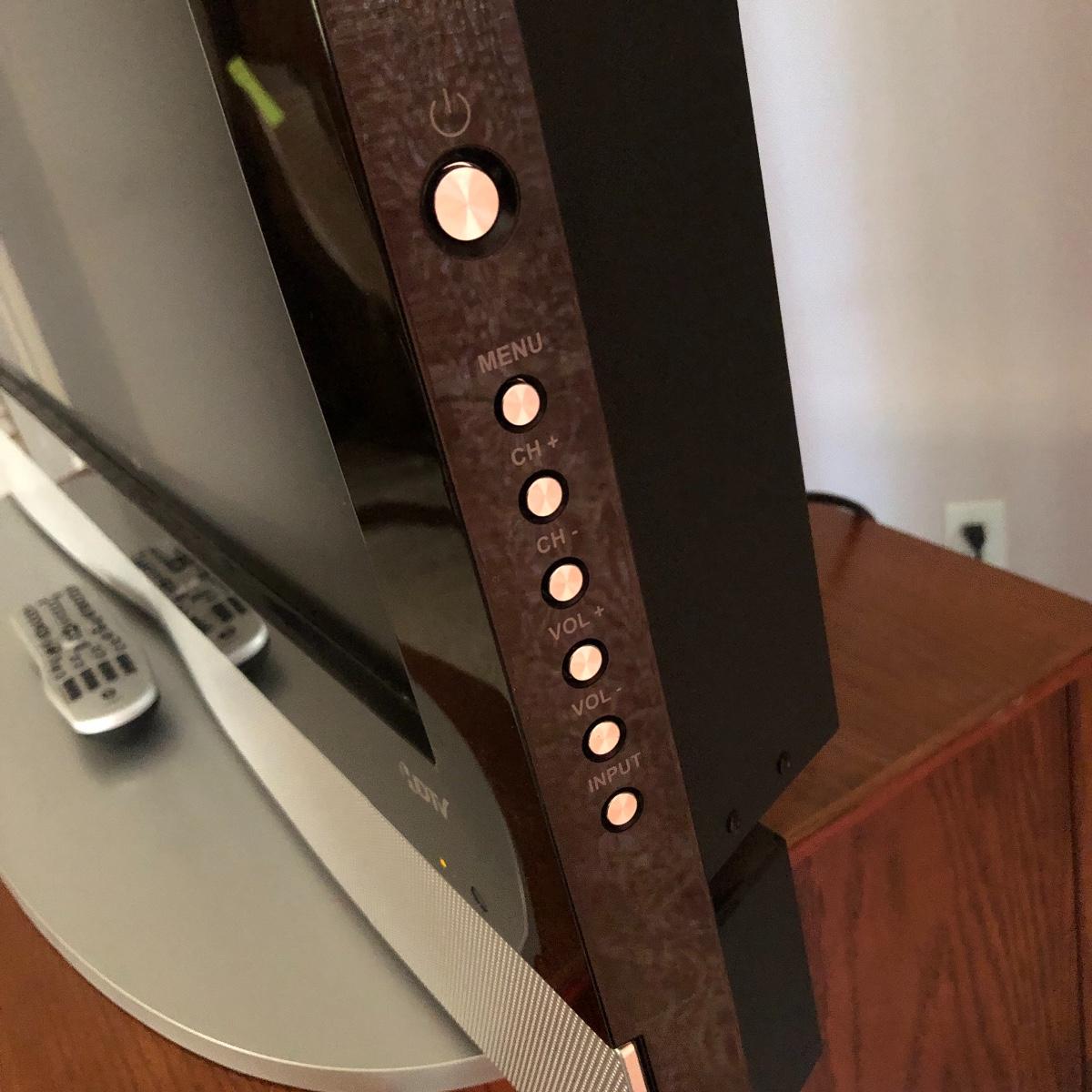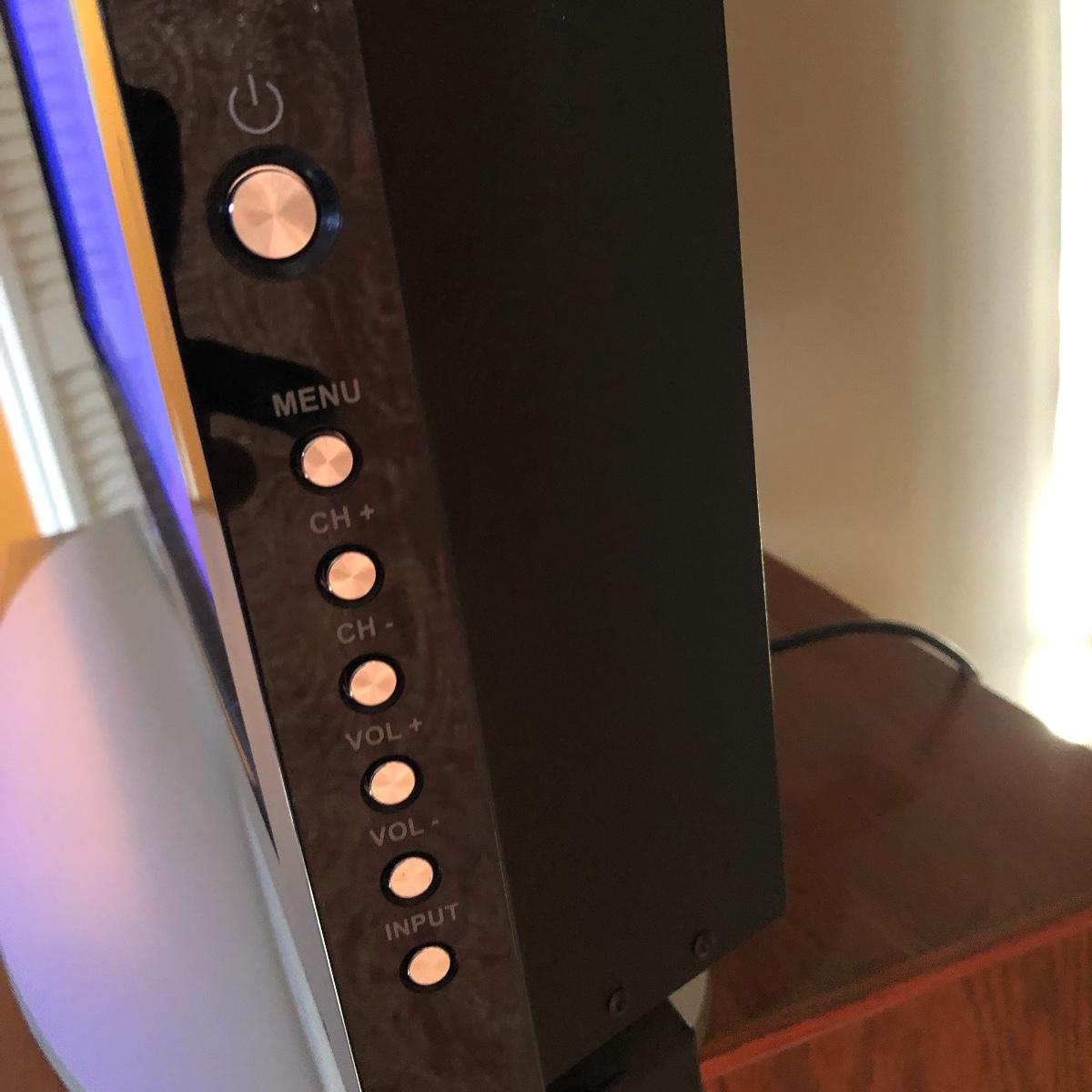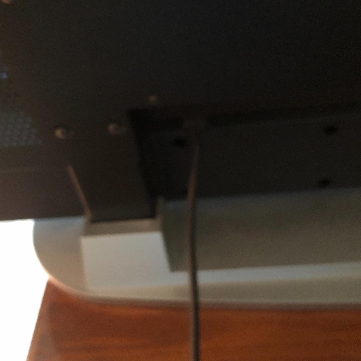 TV operates when plugged in. The screen measures 41” and the TV measures 42” x 4.5” x 28.5”. The TV is on a silver stand and comes with a remote. Local pick up only.