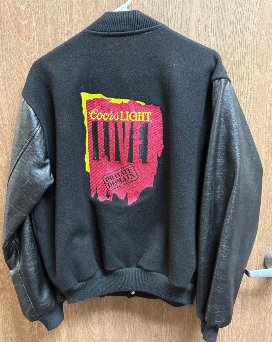 Coors Light Live Private Domain patch on left breast, larger logo on there back. Has an embroidered name "Mac" on the right breast. See Photos form details.
