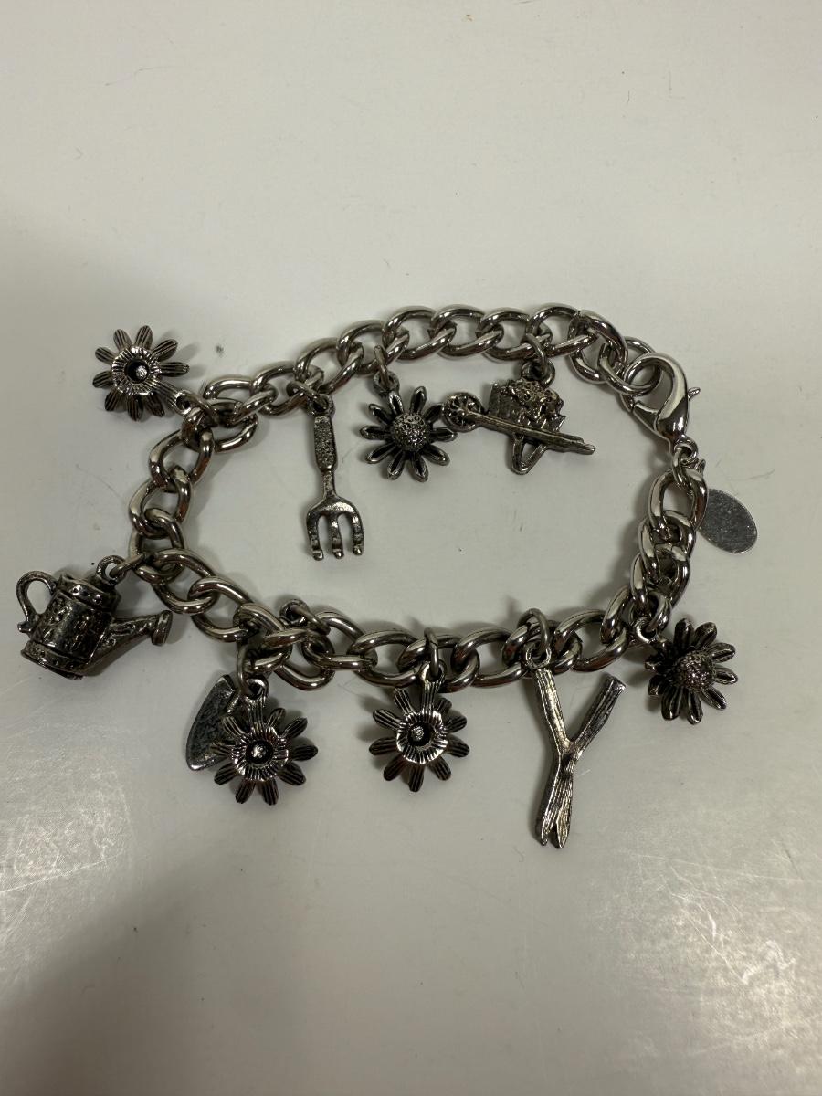Vintage Cookie Lee Gardening themed Silver-tone Charm Bracelet