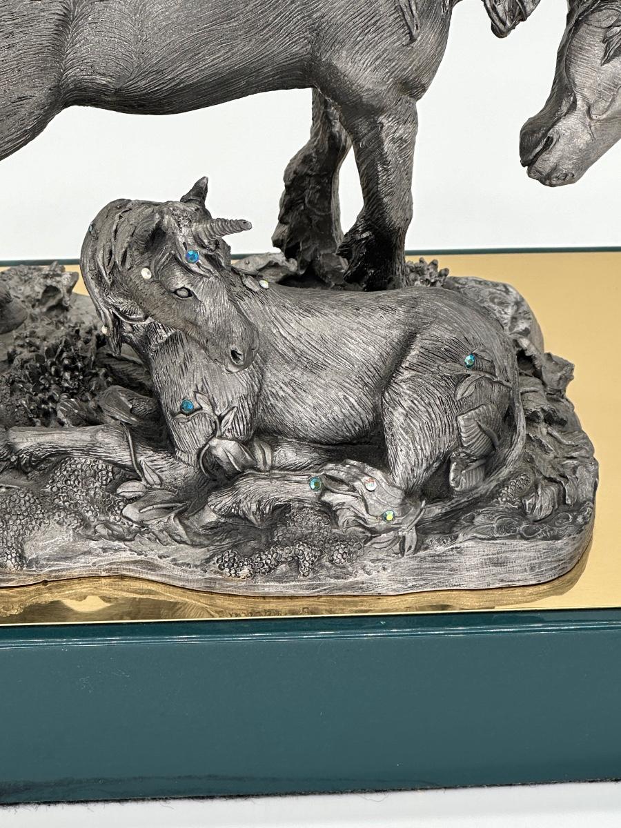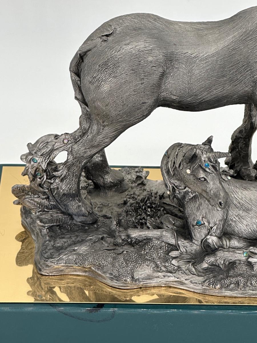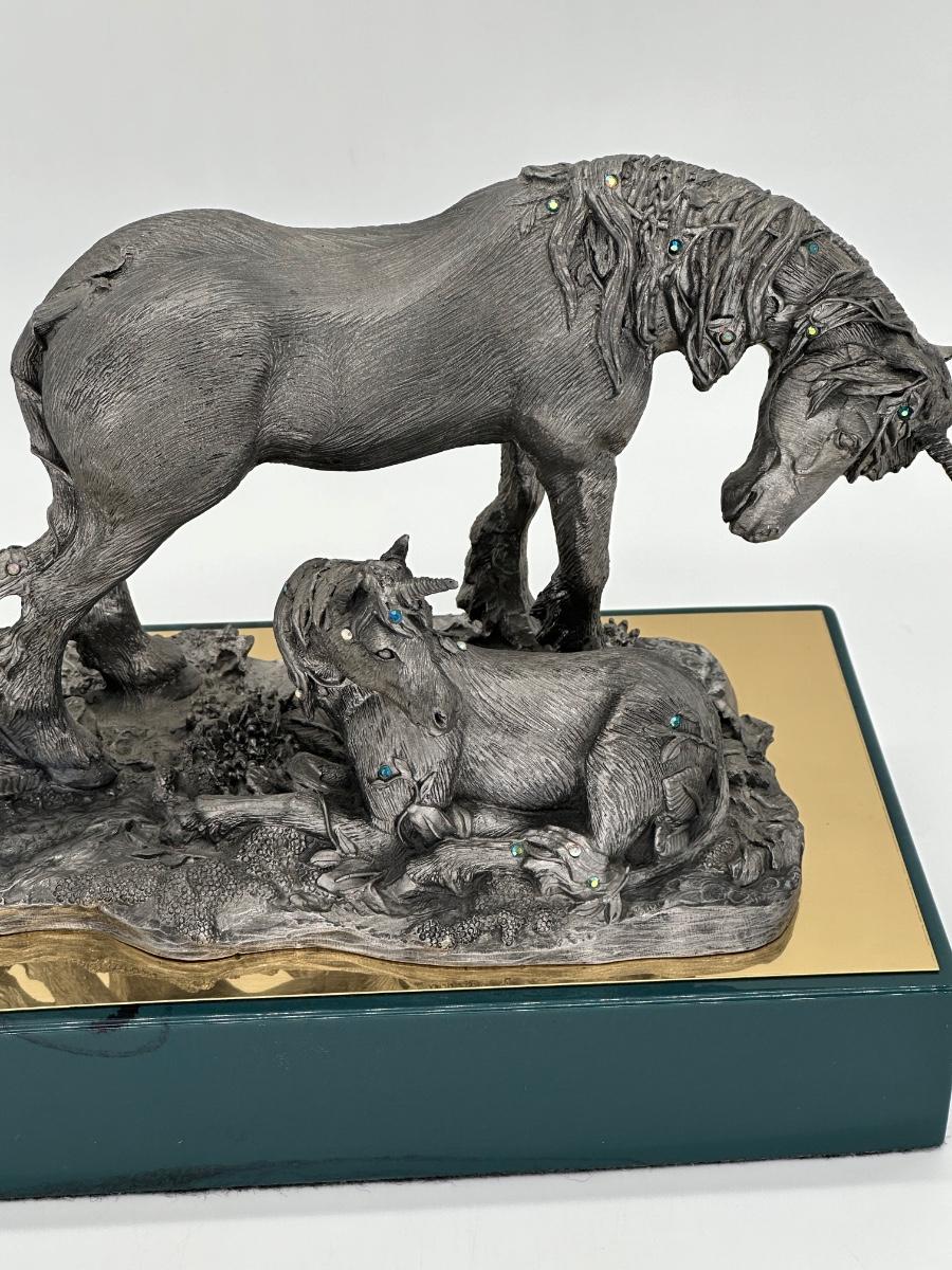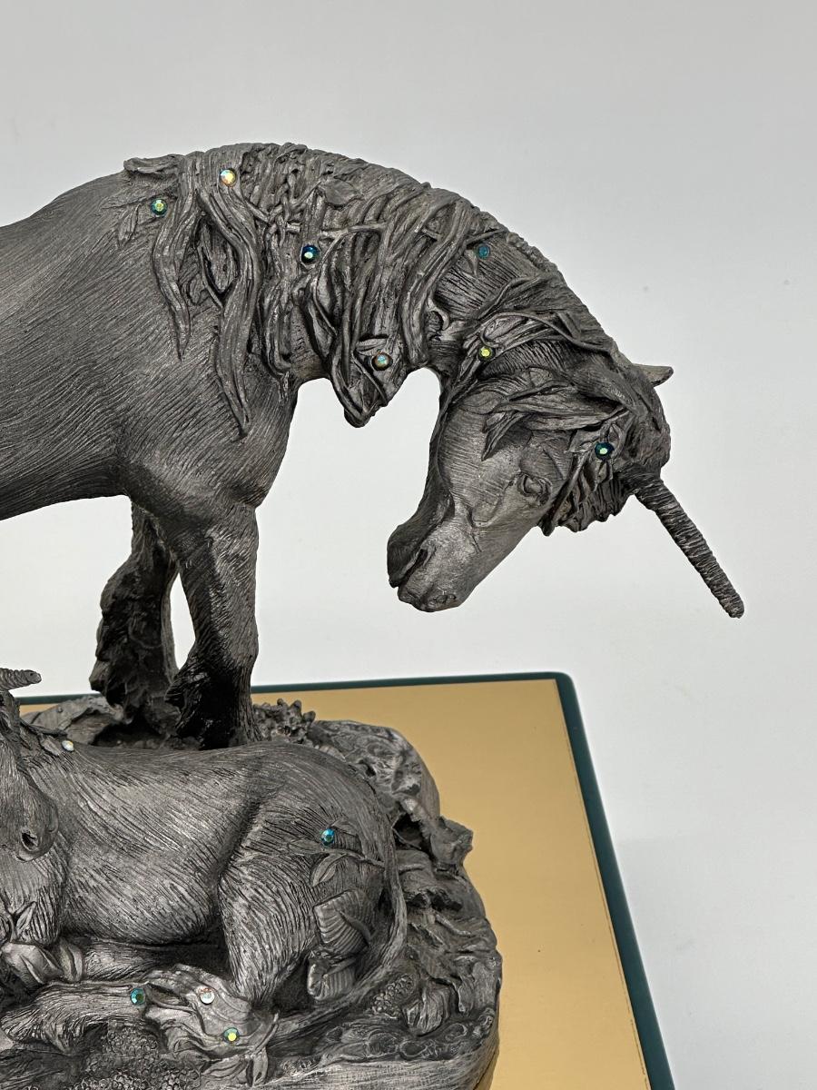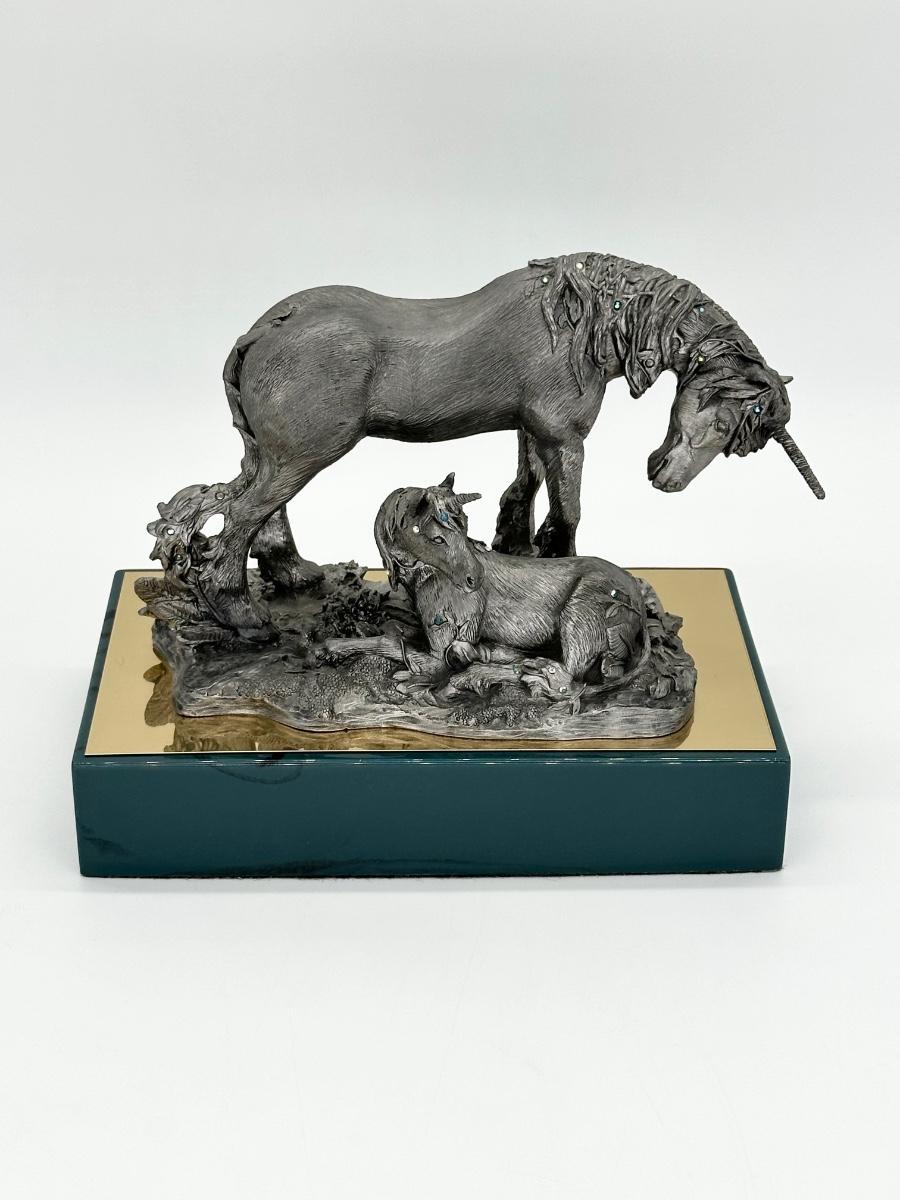 MICHAEL RICKER ~ Unicorn Mother & Baby ~ Pewter Sculpture ~ Like New