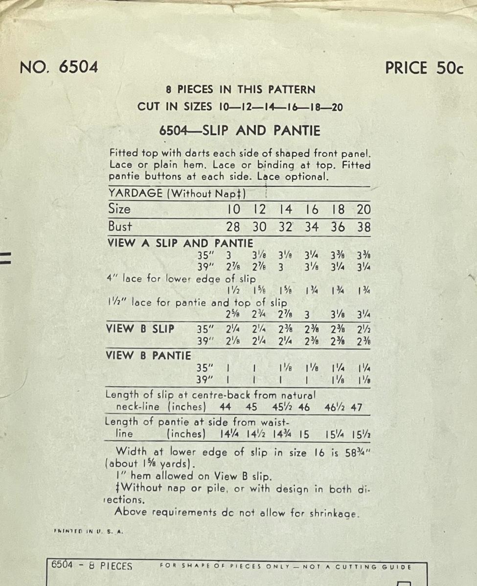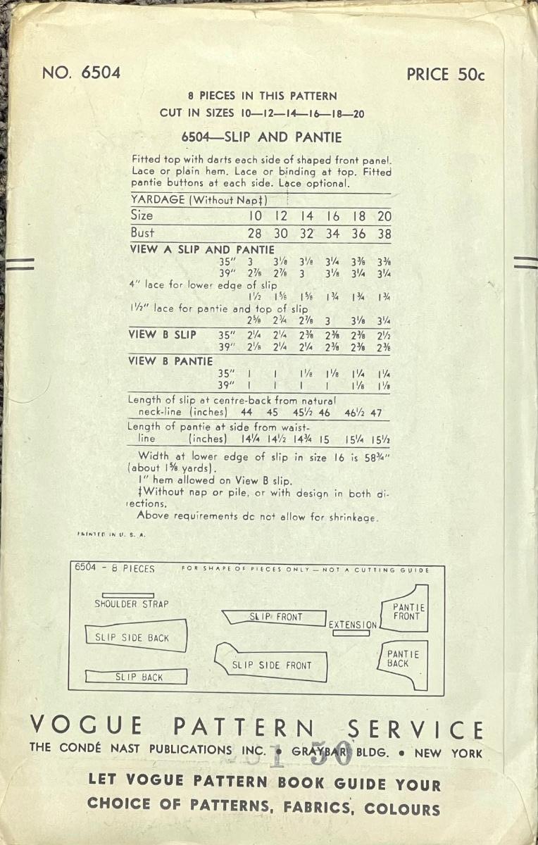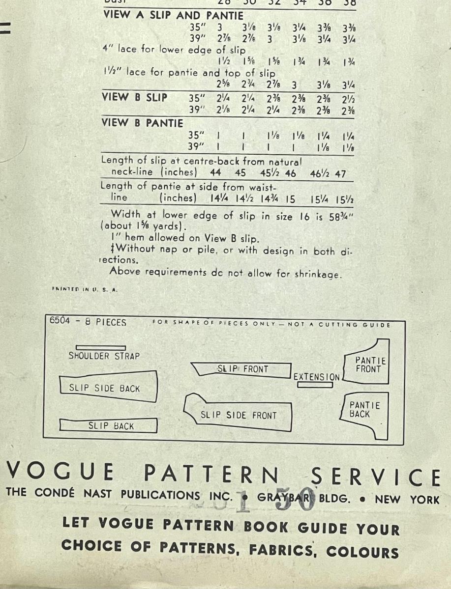Vogue Pattern No. 6504 size 16 bust 34 hip 37. All pieces verified.