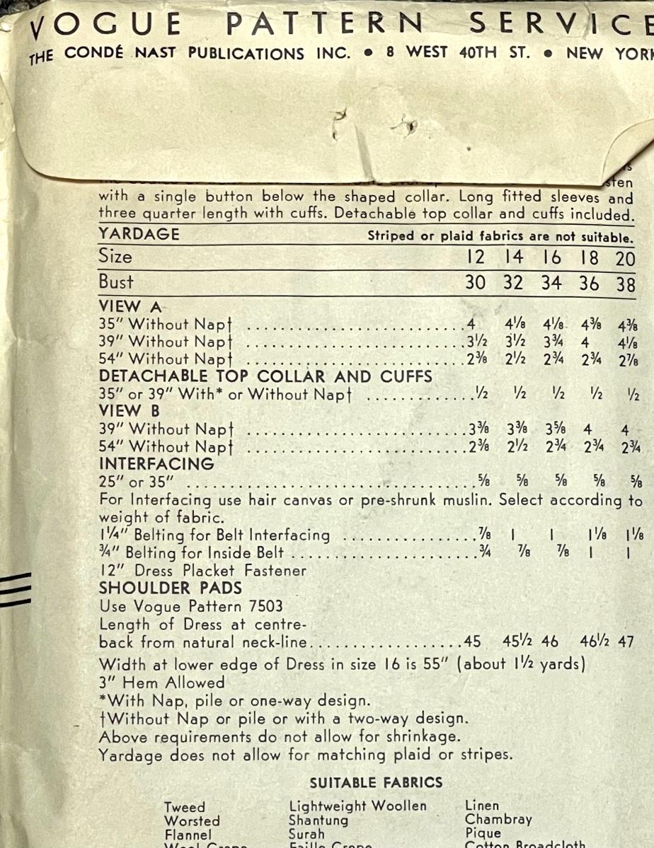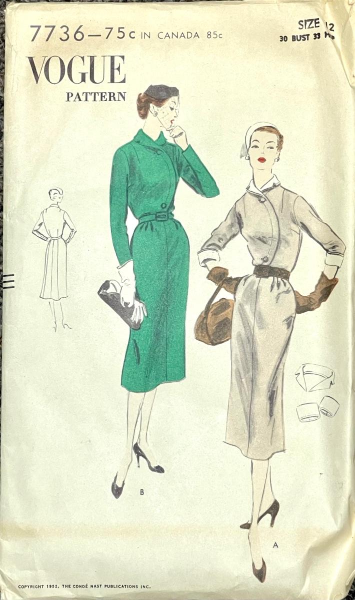 Vogue Pattern No. 7736 size 12 bust 30 hip 33 1952