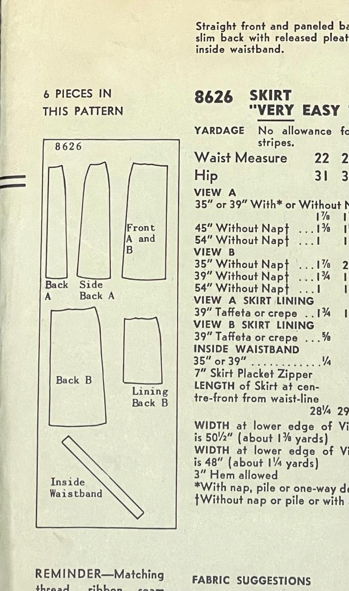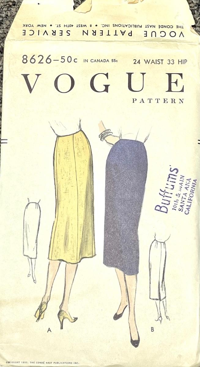 Vogue Pattern No. 8626 waist 24 hip 33 1955. All pieces verified.