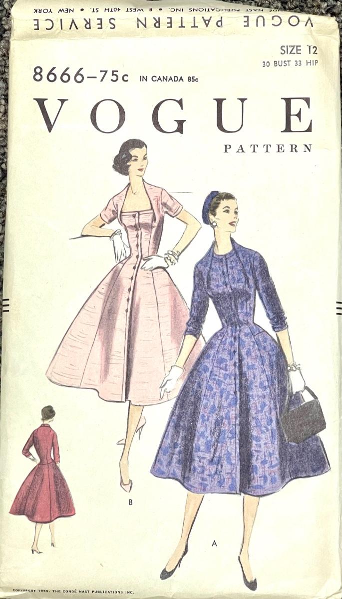 Vogue Pattern No. 8666 size 12 bust 30 hip 33 1955