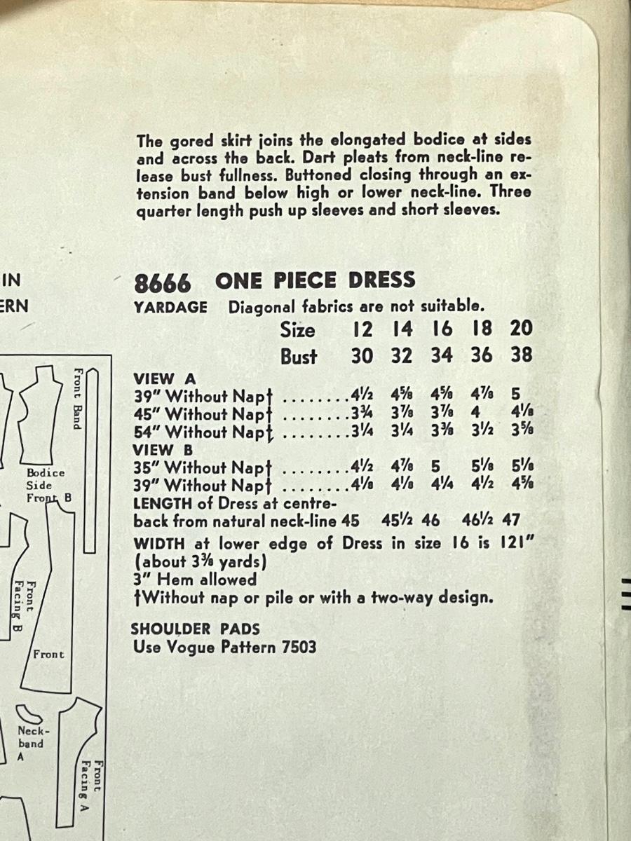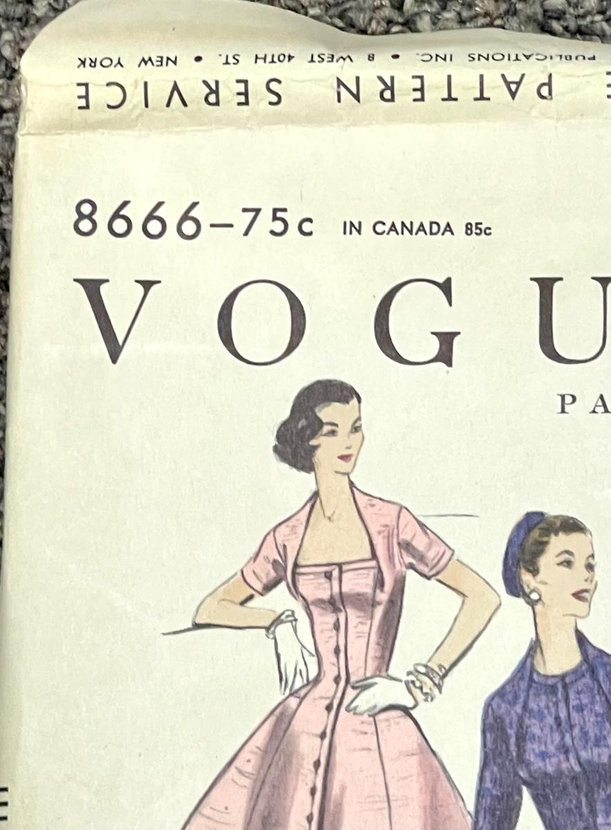 Vogue Pattern No. 8666 size 12 bust 30 hip 33 1955
