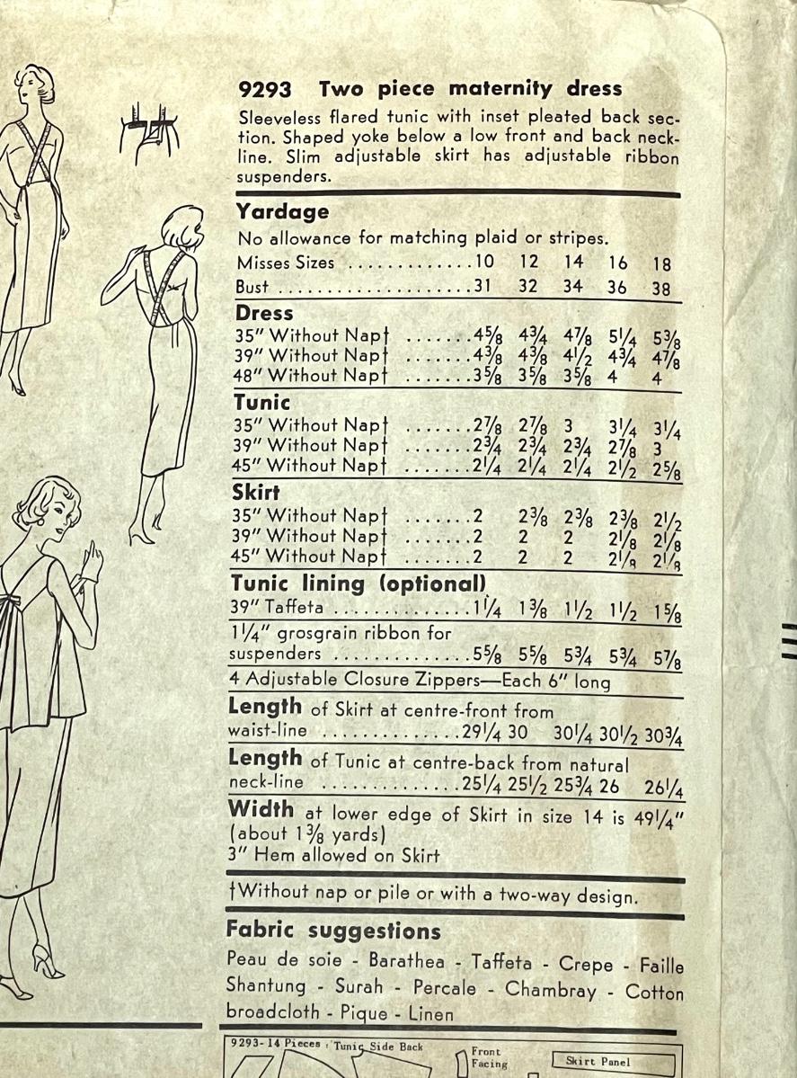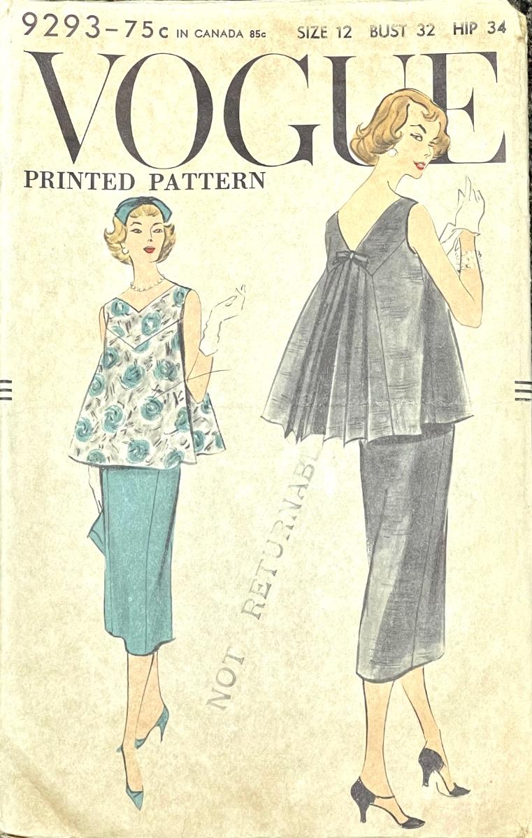 Vogue Printed Pattern No. 9293 size 12 bust 32 hip 34 Two piece maternity dress. All pieces verified.