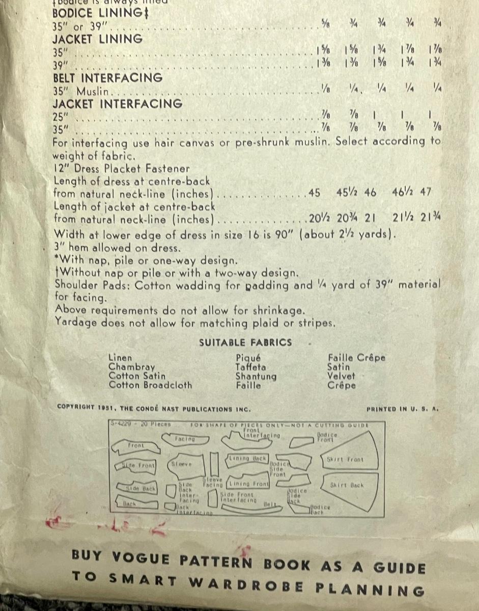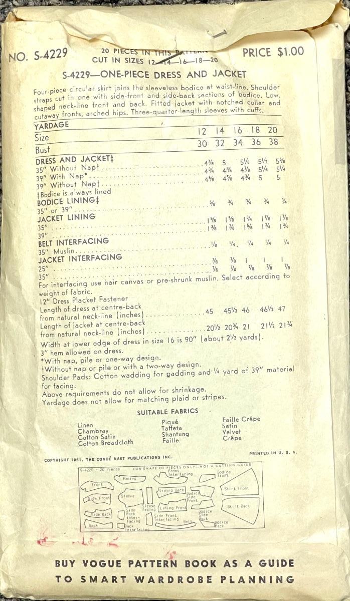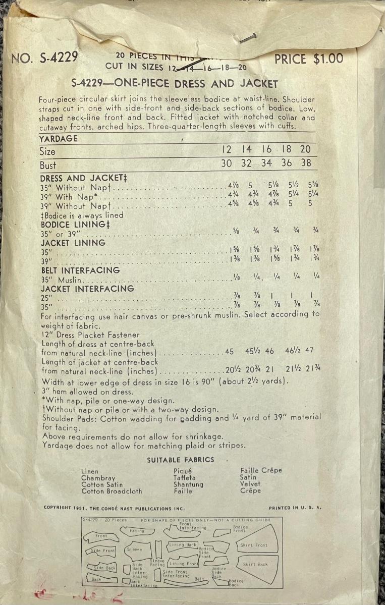 Vogue Special Design No. S-4229 size 16 bust 34 hip 37 1951