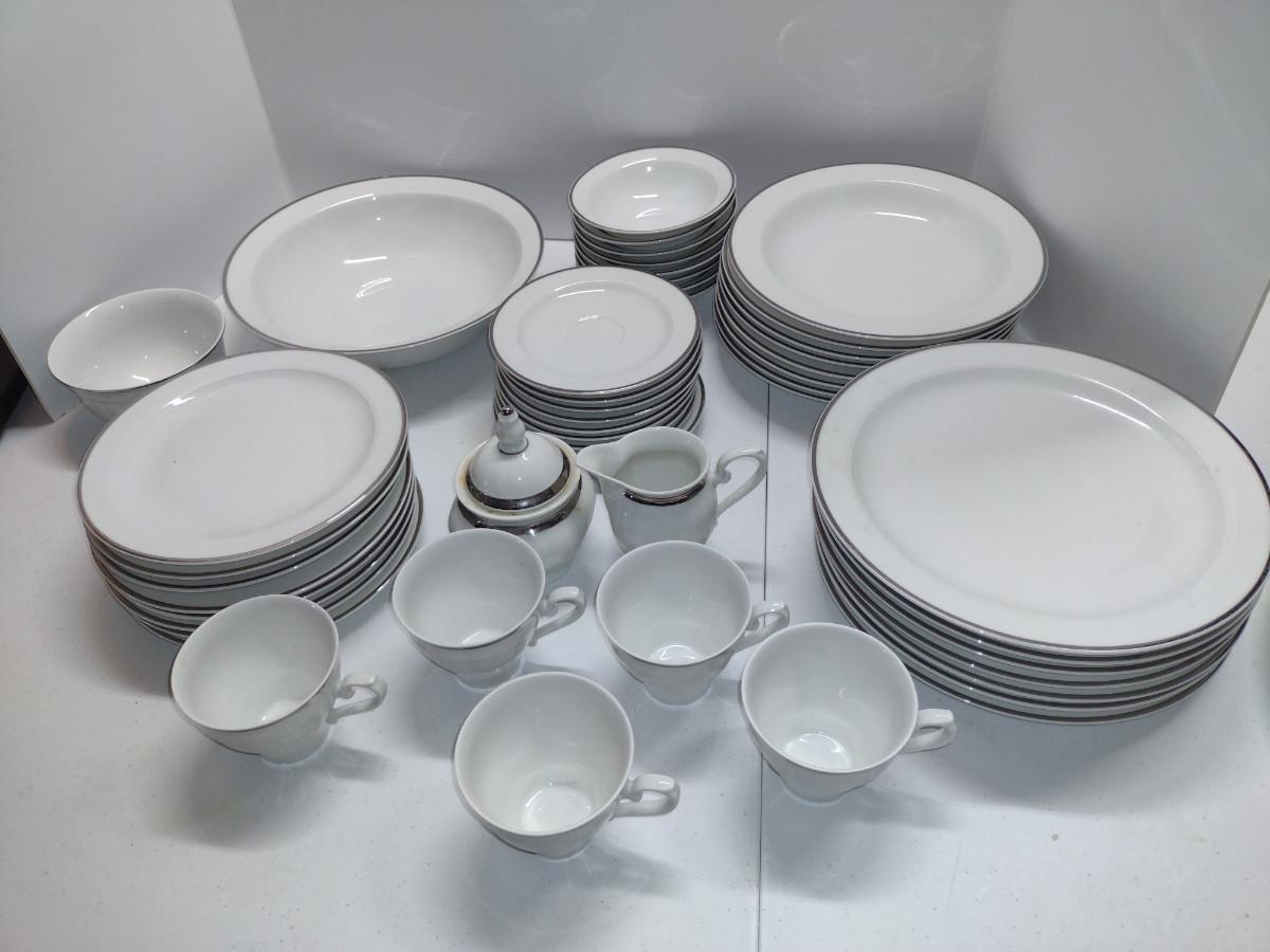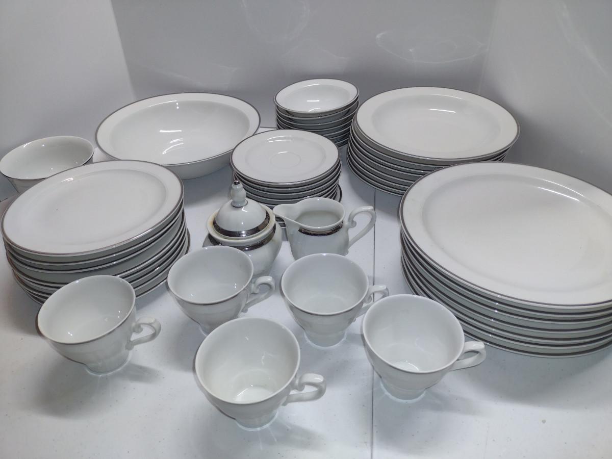 Vohenstrauss Johann Feltmann Bavaria China- Approx 50 Pieces. Includes 8 of each: dinner plate, salad plate, soup bowl, berry bowl, saucer. Also: cup- 5, cream & sugar, vegetable bowl (10")- 1, platter (13")- 1, bowl with underplate. Set is in used condition and has several chipped pieces.