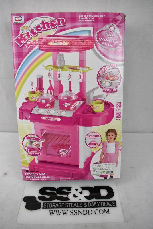 Vokodo Deluxe Toy Kitchen Playset 2 Feet Tall With Pots Oven Stove Sink Appliances Lights & Sounds. Open Box - New
