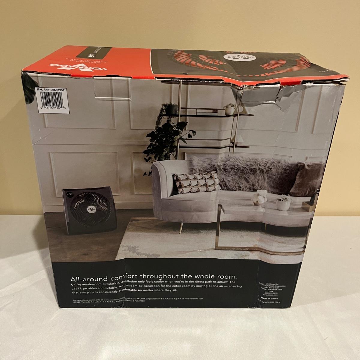 Lot includes a NIB Vornado fan and a Vornado heater. Heater measures 11” x 9” x 12”H.