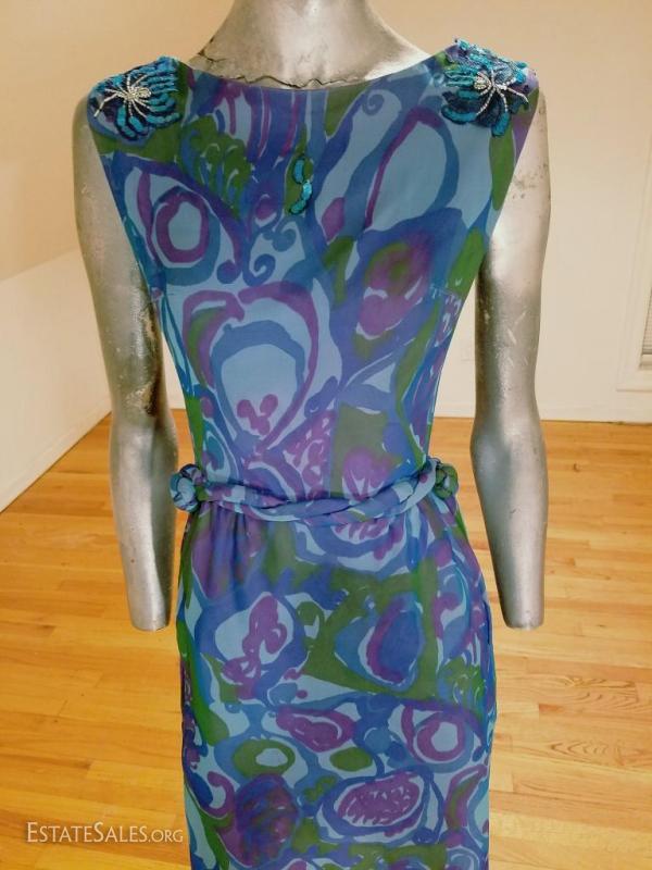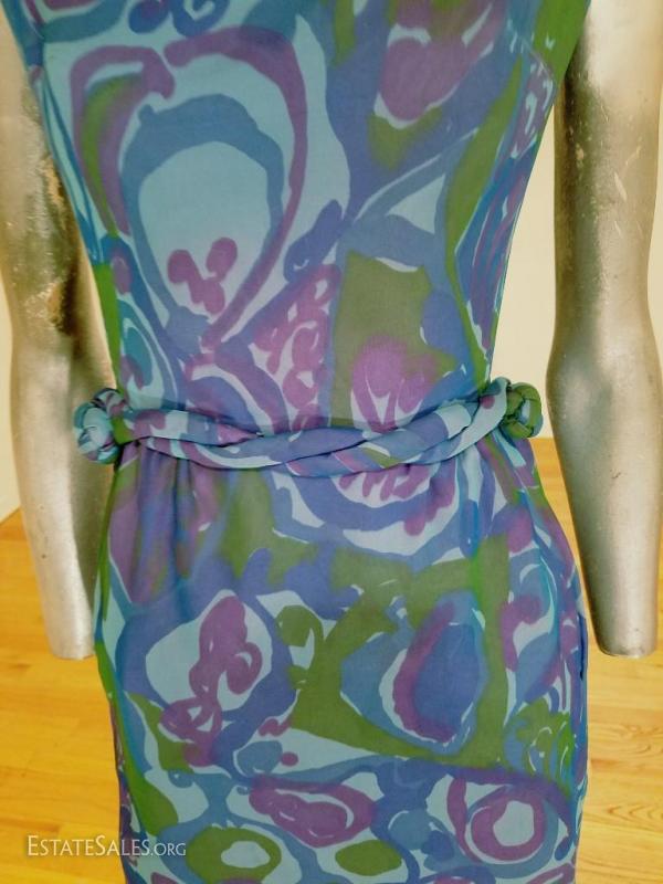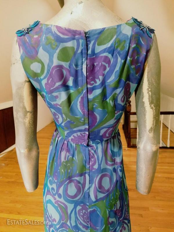 Vtg 1050's silk screen silk chiffon wiggle dress Lord & Taylor Metal zipper