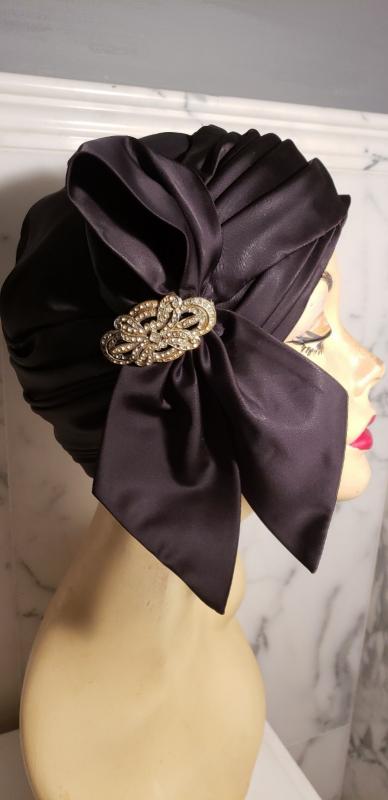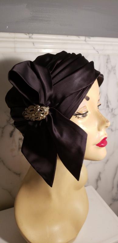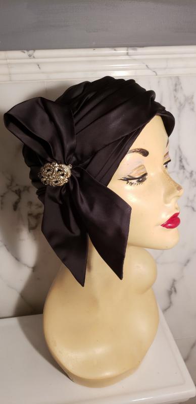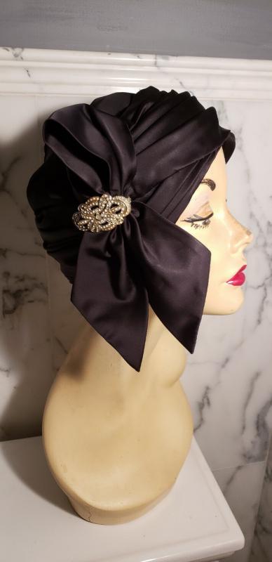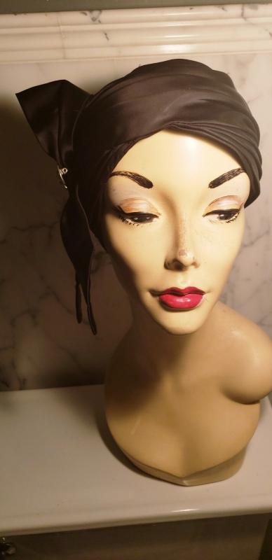 This one is stunning from th late 1920's by Betmar .True to the Era with an old rhinestone pin that was added. The insid is Grosgrain and beautifully finished. The outside is ruched detailed. In very good vintage condition this one is a beauty.