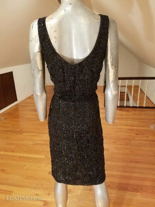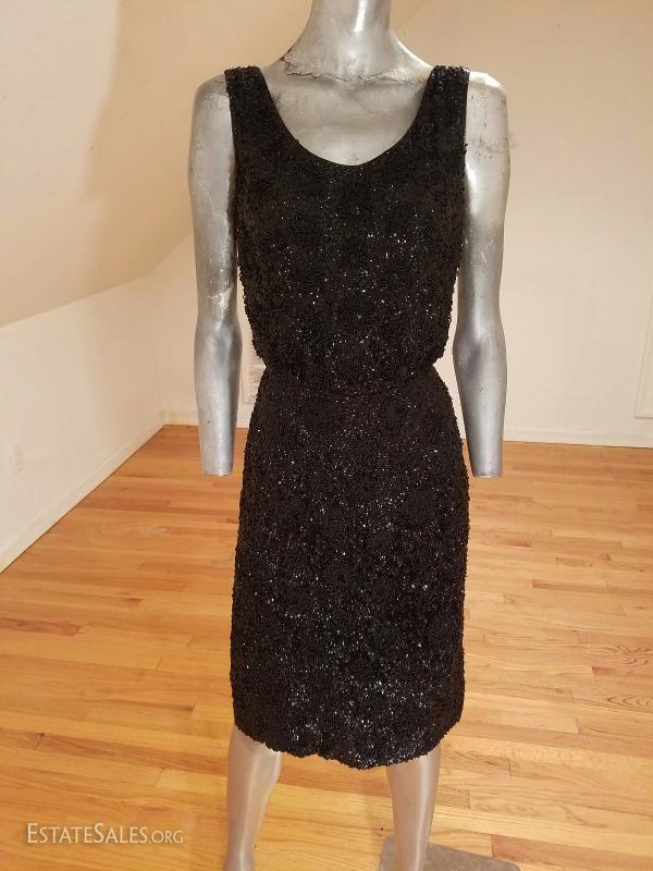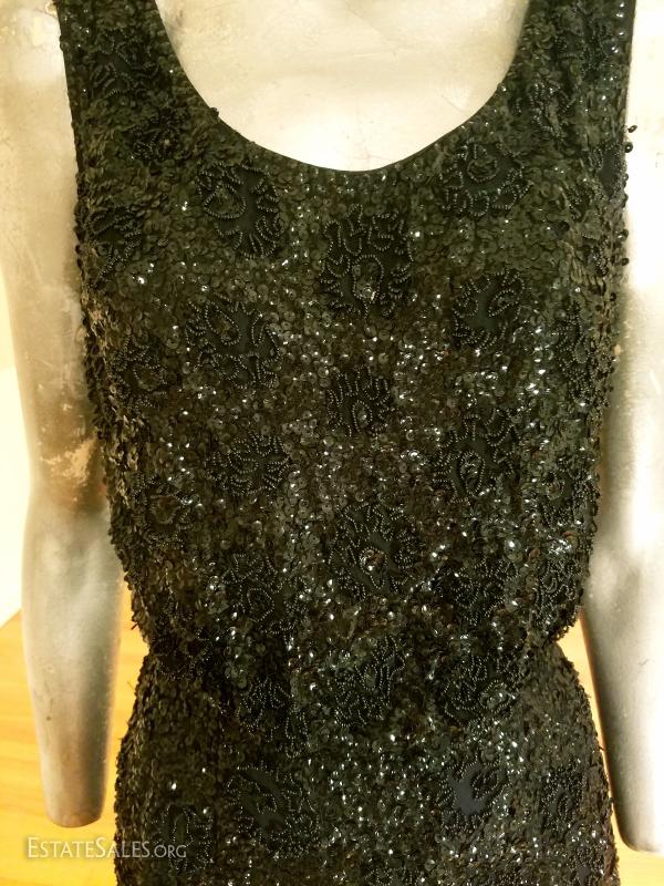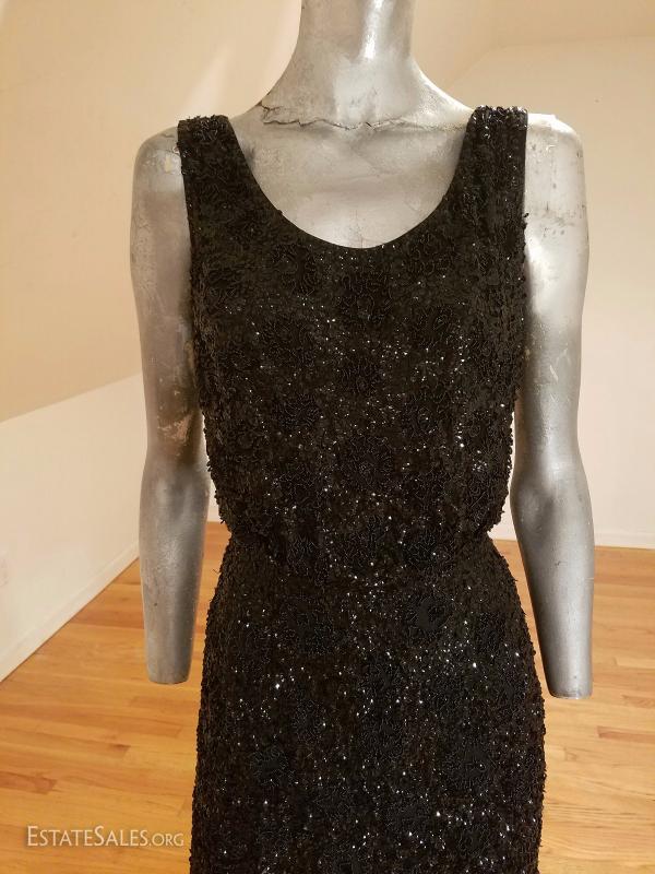 Vtg 1930's silk crepe flapper dress hand beaded embroidered sequins